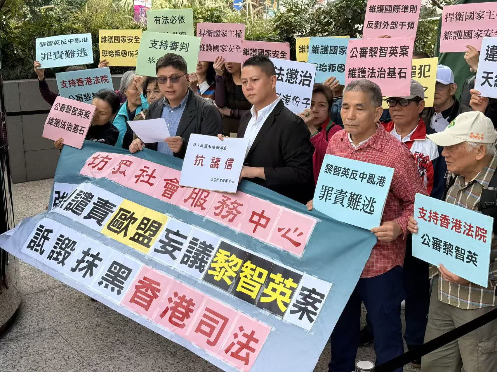 多個市民團體今日赴歐盟駐港辦事處、加拿大駐香港總領事館、日本駐香港總領事館等地集會抗議,批評這些國家干預香港事務,干涉中國內政,抹黑詆毀香港司法,他們對此表示強烈的譴責,指黎智英是一系列反中亂港事件的主要策劃者和參與者,破壞香港穩定和繁榮,黎智英罪有應得,團體支持香港法院對黎智英的判決。
