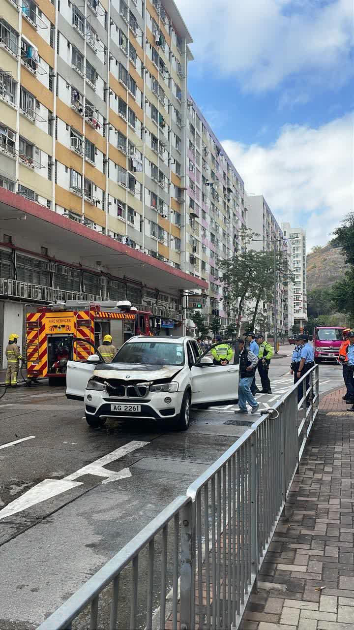 石硤尾有車輛起火。今日(19日)中午12時40分,一輛白色私家車沿窩仔街往九龍塘方向行駛,至近石硤尾邨美笙樓對開時,車頭位置突然起火冒煙,引擎蓋被燒至焦黑。私家車司機發現後將車停下並報案求助。