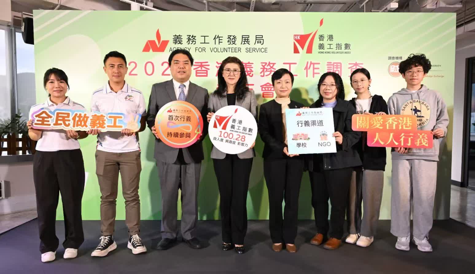 香港文匯報訊 義務工作發展局(AVS)最新發布的「2025香港義務工作調查」顯示,「香港義工指數」今年微升至100.28,反映市民對義務工作的認同感持續提升。研究更指出,市民普遍認為義工能有效促進社會和諧與包容,相關評分在5分制下首次突破4分,印證義工服務已成為連結社區的重要力量。