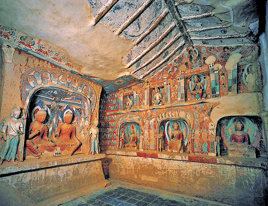 在這一過程中,它們奇妙地糅合着漢民族生活場景中的建築形式——宮闕,更在洞窟的整體空間布局上,體現了古印度與中原文化之間的深度對話與創新。