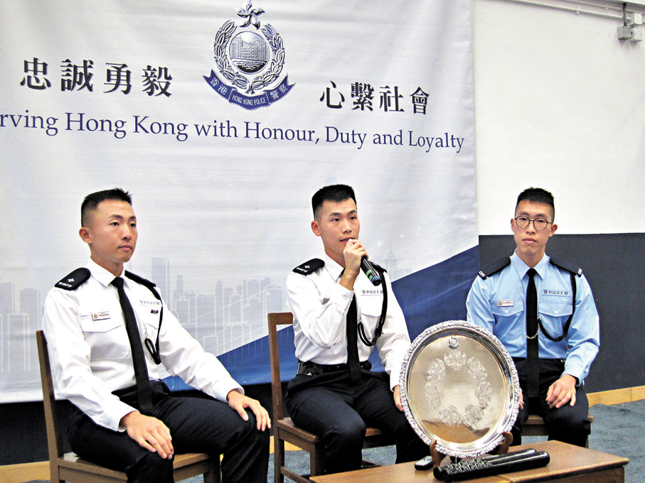 香港文匯報訊(記者 曾立本)香港警察學院於今日舉行結業會操,見證新一批34名見習督察及187名警員加入警隊。3名表現傑出的學員早前向傳媒分享投身警隊的心路歷程。獲得施禮榮盾及榮譽警棍的男見習督察莫竣稀,在英國修畢航空航天工程碩士課程。他坦言,在國外讀書期間,晚上不敢單獨前往一些治安差地區,反觀在香港能夠於任何時候安心獨自上街,「這份安定感,其實來自香港有一支訓練有素、紀律嚴明的警察隊伍,有賴他們努力維持社會秩序和保護市民生命財產。」
