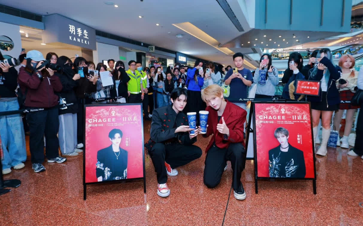 香港文匯報訊(記者 余雁)韓國人氣男團XODIAC 兩位香港成員麥駿昇(SING)及李傲賢(LEO)近日回港,快閃12小時於三間茶飲店擔任「一日店長」,與粉絲近距離互動,並分享他們對茶飲文化的喜愛。活動吸引大批粉絲到場,氣氛熱烈。