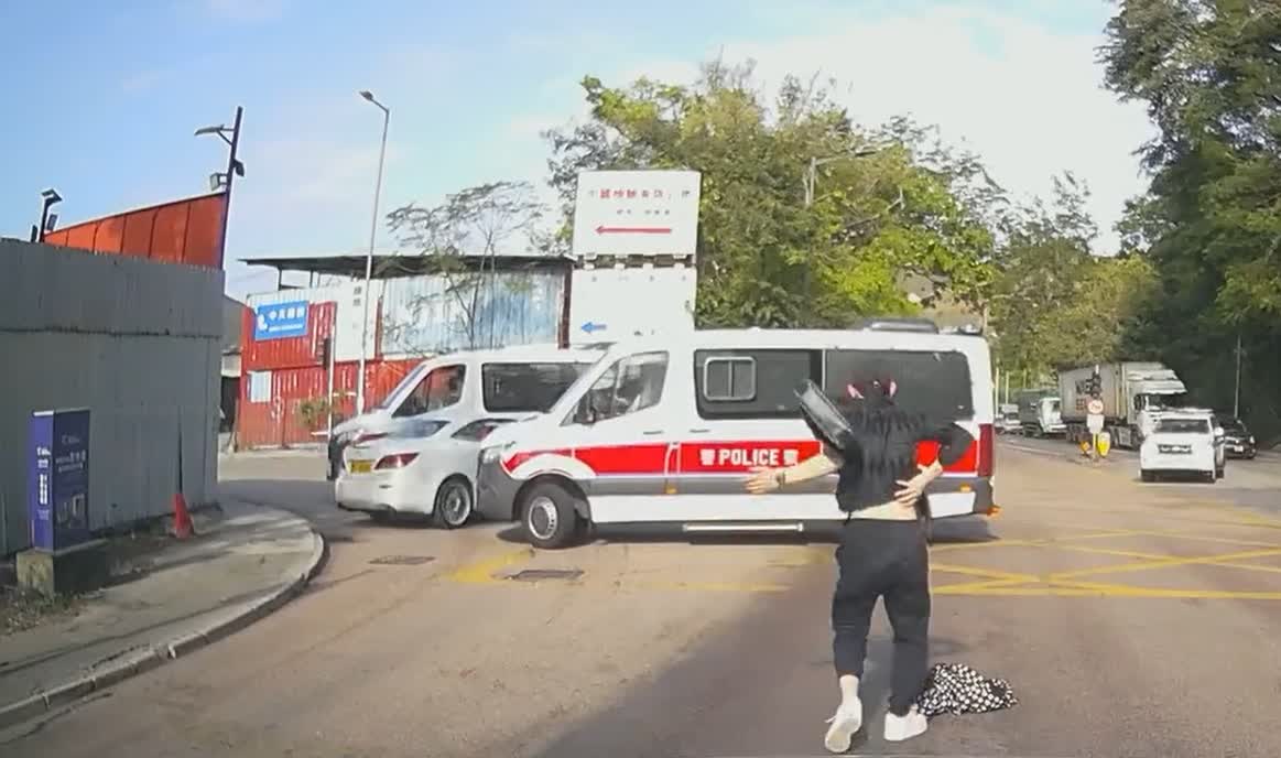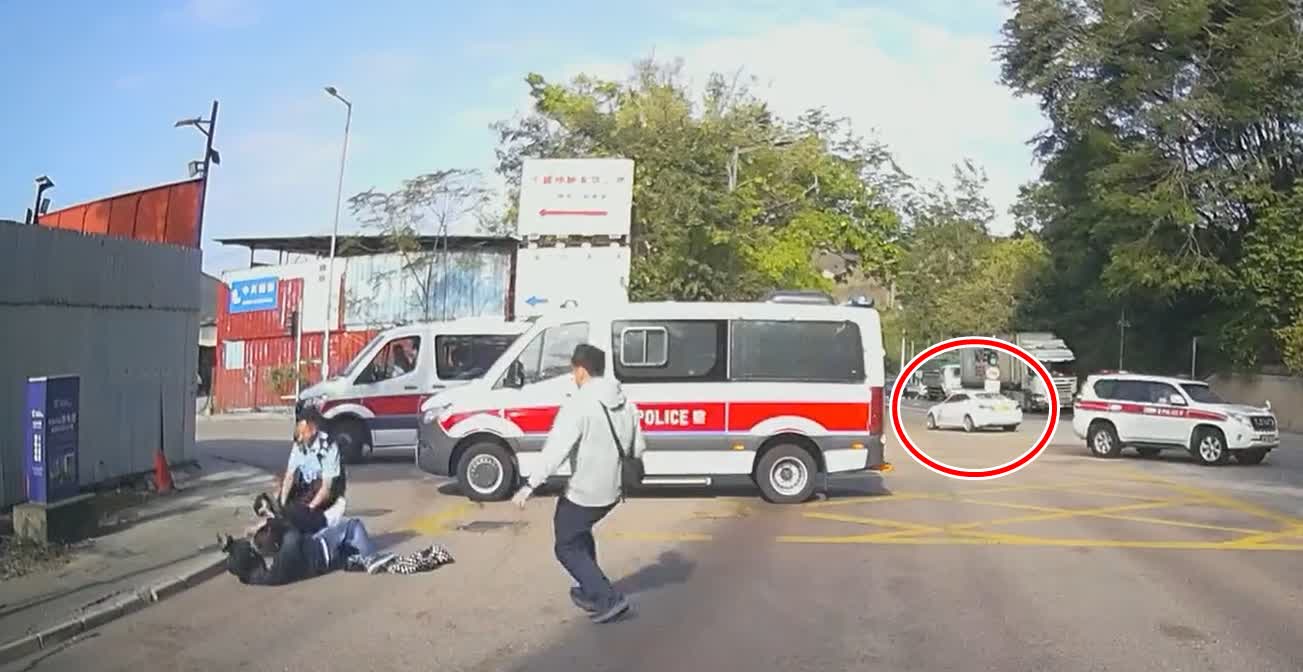 香港文匯報訊(記者 蕭景源)今日(20日)網上有帖文瘋傳一段長約40秒的短片,顯示一輛白色私家車沿打鼓嶺文錦渡路往上水方向行駛,當駛至近缸瓦甫路一貨倉外交通燈位,私家車司機無視3輛警車閃着警號的警車夾擊包抄,竟在路口180度打橫調頭。