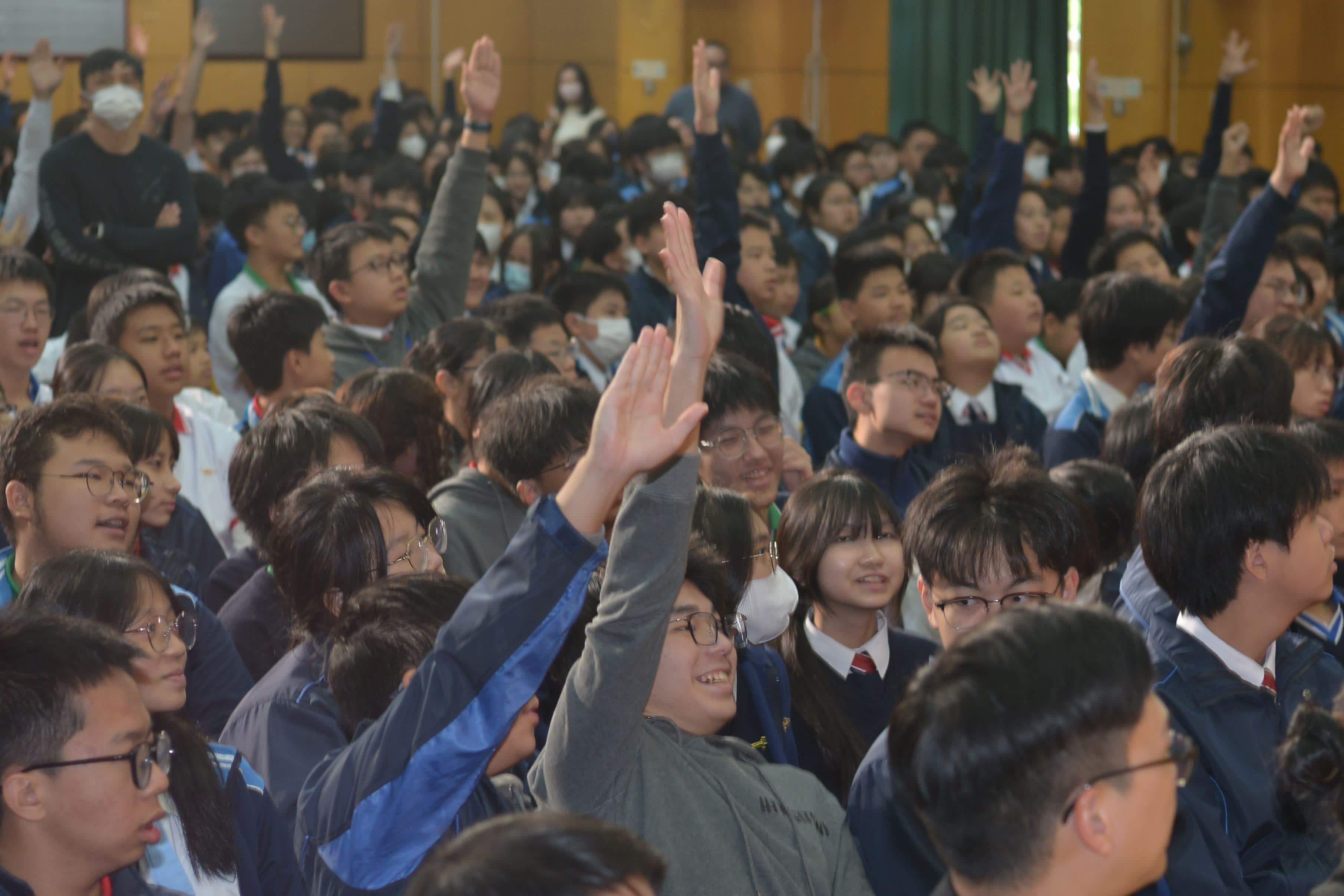 這堂課以「覺醒年代」為切入點,帶領學生重返二十世紀初那段風雨如晦的歲月:列強入侵、國家積弱、人民離散。通過珍貴歷史照片、影片及真實人物故事,三位來自澳門聖若瑟教區中學第六校的同學以清澈聲線與沉穩台風進行主講,講述無數仁人志士如何在絕境中尋找救國真理,分享革命先輩在生死考驗面前的理想信念,以及當代青年如何從歷史中汲取前進力量。互動環節氣氛火熱,主辦方準備了精美獎品,同學們舉手踴躍搶答,禮堂內笑聲不斷。最後以聖若瑟教區中學第六校黃惠玲副校長上台致辭作結,完美落幕。