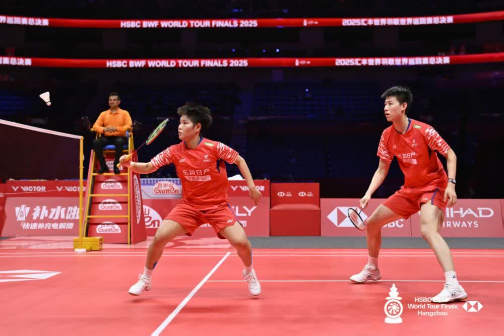 下午兩點開打的首場比賽將在兩對中國組合中進行,中國隊也提前鎖定了混雙金牌。究竟是馮彥哲/黃東萍,還是蔣振邦/魏雅欣能拿下年終冠軍,一起為他們加油。