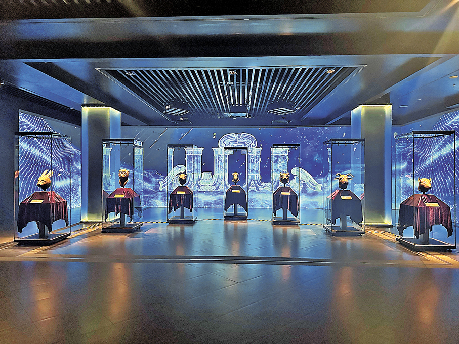 獸首展廳內,三摺幕沉浸式投影與互動裝置完美復原了圓明園海晏堂大水法的流水聲、機械運轉聲,演繹四季景觀變化,站在被獸首環繞的展廳中央,彷彿穿越回當年「萬園之園」的盛景。