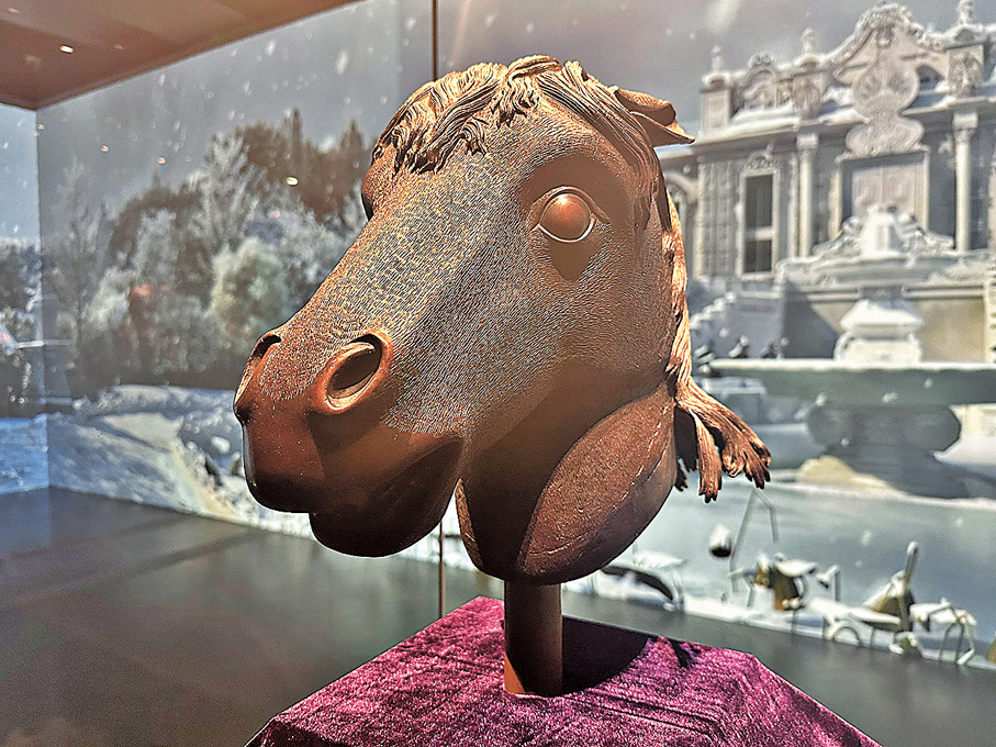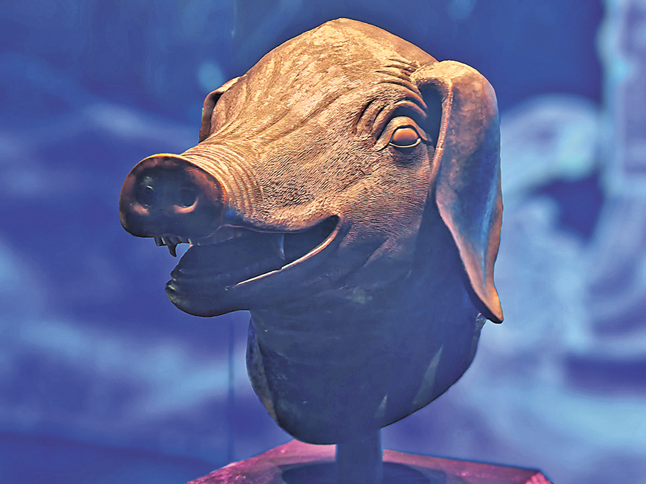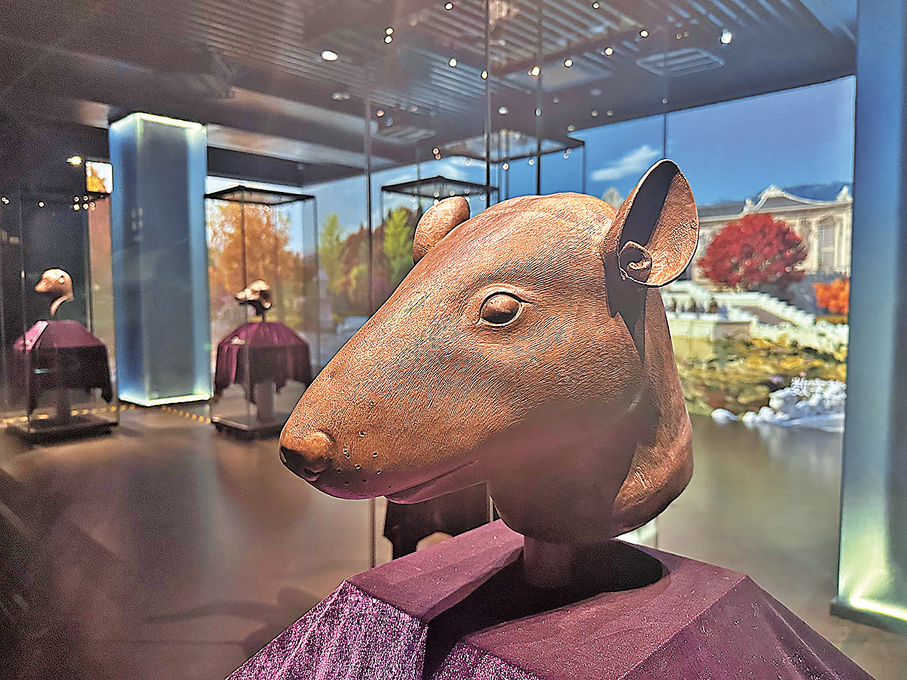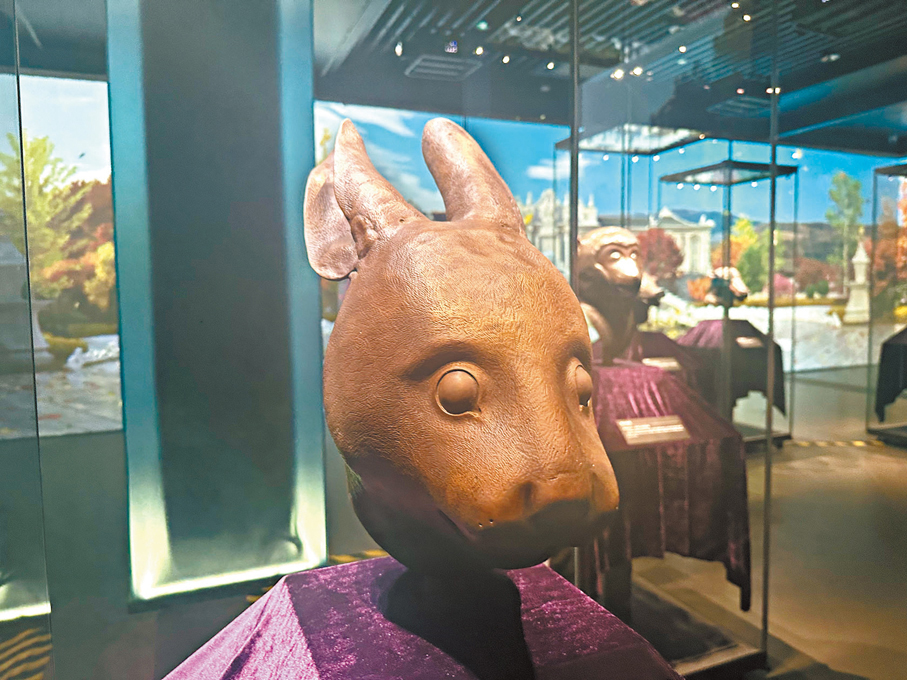 此次展覽中最引人注目的,當屬7件圓明園十二生肖獸首銅像。牛首、虎首、猴首、豬首四尊獸首為珍貴文物原件,鼠首、兔首為複製件,馬首為仿製件。宏大且精緻的展陳,配合數字藝術等形式的呈現,讓來賓對圓明園獸首有了更全面的認識。