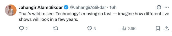還有網友感嘆,「真是太瘋狂了。科技發展如此之快——想像一下幾年後現場表演將會有多麼不同。」↓