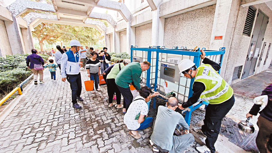 昨日下午,天平邨的天賀樓、天祥樓和天怡樓已陸續恢復供水,但仍有部分區域停水。民政事務總署在社交專頁表示,昨日下午部分地區的食水供應已逐步恢復,民政處已聯絡水務署,在天平邨多處安排水車及大水缸,為居民提供備用食水,關愛隊亦在場提供協助,包括設置臨時資訊服務站,以便居民查詢及尋求幫助。