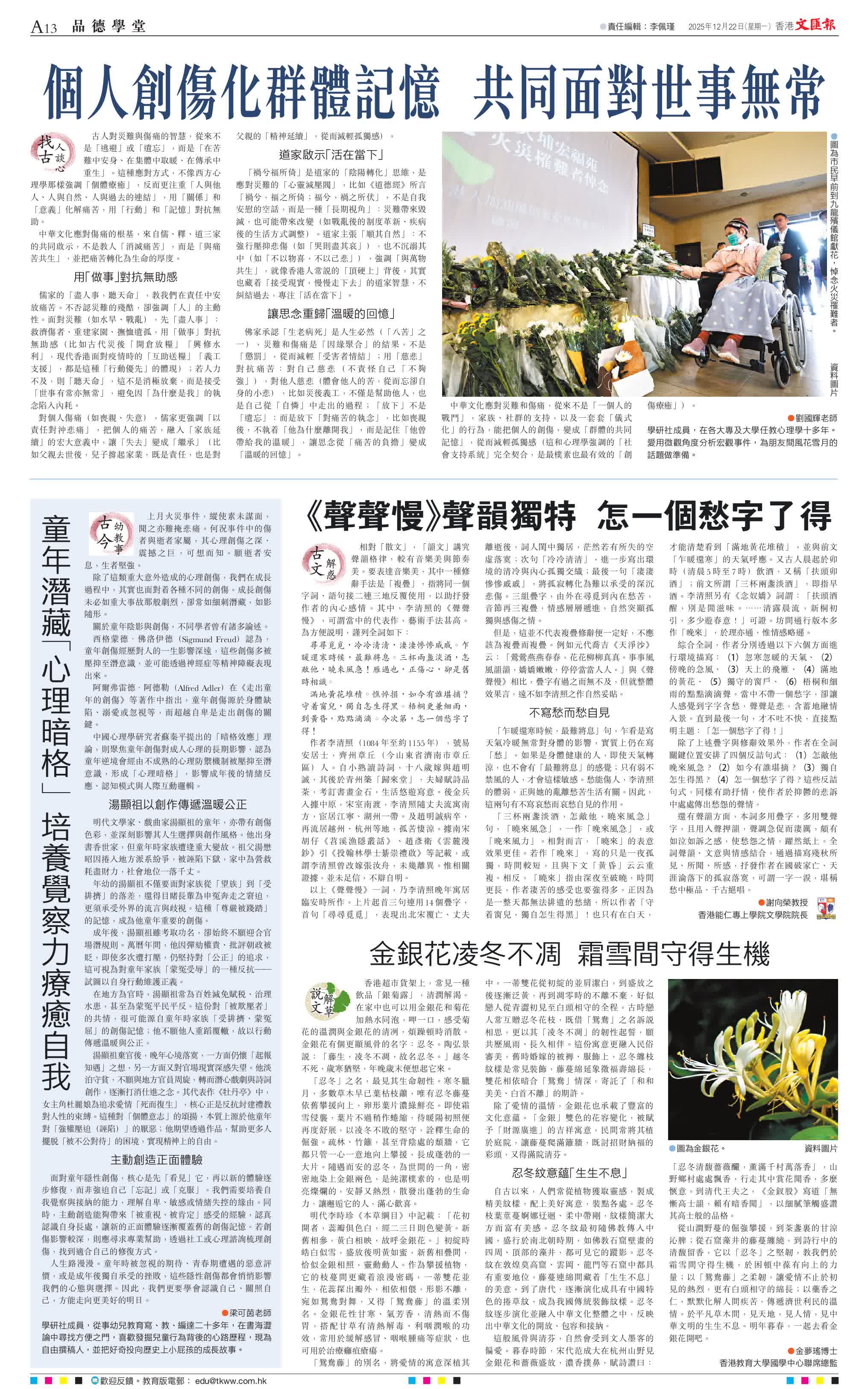中華文化應對傷痛的根基,來自儒、釋、道三家的共同啟示,不是教人「消滅痛苦」,而是「與痛苦共生」,並把痛苦轉化為生命的厚度。