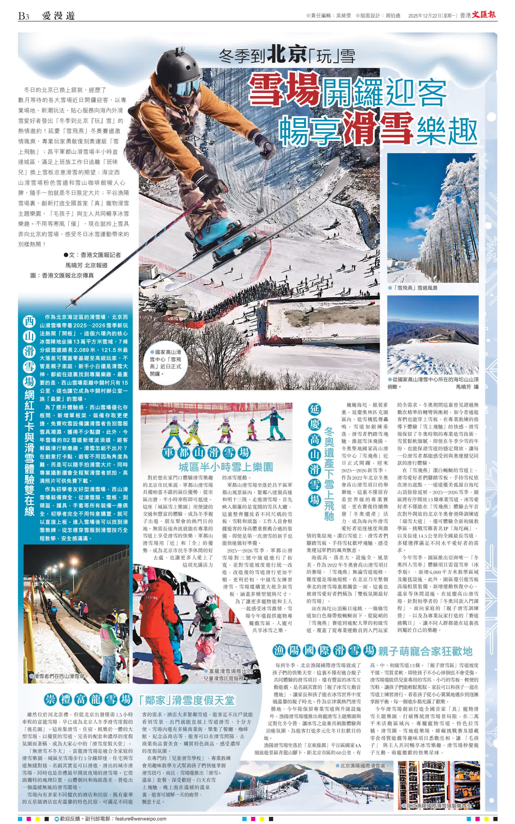 香港文匯報訊(記者 馬曉芳 北京報道)冬日的北京已換上銀裝,經歷了數月等待的各大雪場近日開鑼迎客,以專業場地、新潮玩法、貼心服務向海內外滑雪愛好者發出「冬季到北京『玩』雪」的熱情邀約!延慶「雪飛燕」冬奧賽道激情颯爽,專業玩家勇敢復刻奧運級「雪上飛馳」;昌平軍都山滑雪場半小時直達城區,滿足上班族工作日逃離「班味兒」換上雪板恣意滑雪的期望;海淀西山滑雪場粉色雪道和雪山咖啡館暖人心脾,隨手一拍就是冬日限定大片;平谷漁陽雪場裏,創新打造全國首家「真」寵物滑雪主題樂園,「毛孩子」與主人共同暢享冰雪樂趣。不用等寒風「催」,現在就拎上雪具奔向北京的雪場,感受冬日冰雪運動帶來的別樣熱鬧!