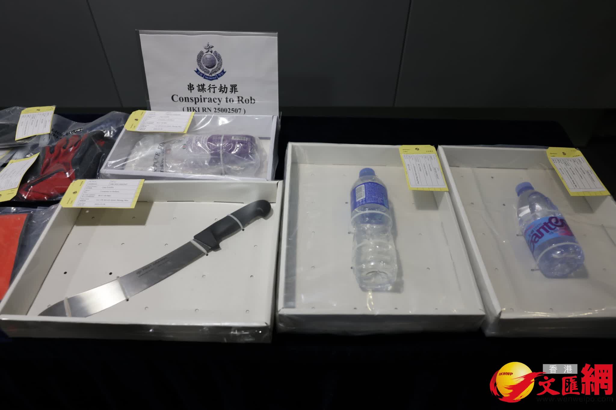 文智陽續說,探員經追查在案發現場附近發現被置的涉案私家車,在車內檢獲一把相信是匪徒所使用過的牛肉刀、用過的口罩及飲用過的飲品。探員經追查後,再於新界區尋獲涉案七人車,但車內未有特別發現。警方行動中,分別在案發現場及拘捕匪徒地點檢獲大批證物,包括匪徒案發時穿着衣物。