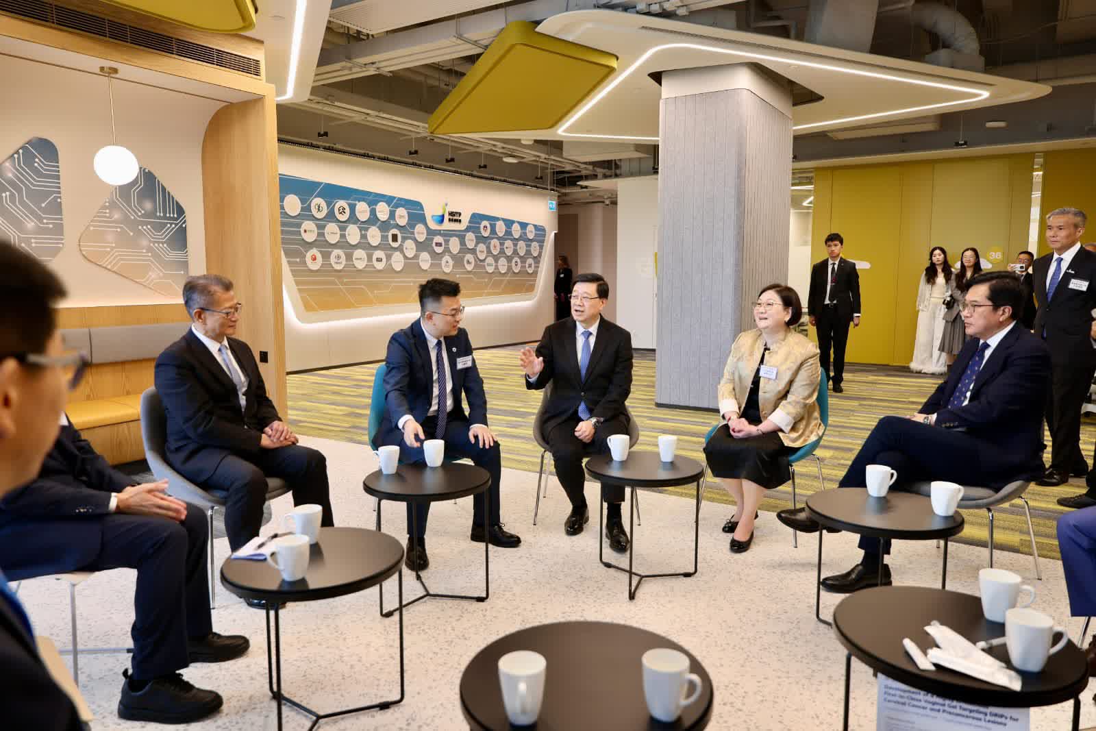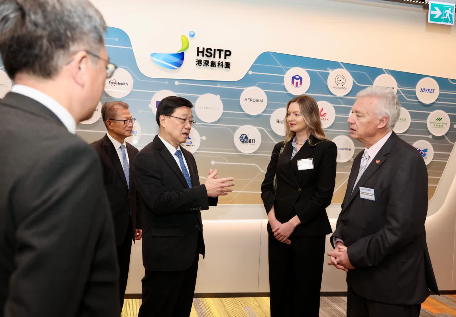李家超指出,創科園香港園區至今已有超過60家本地和海內外不同創科領域的企業和機構與園區簽署租約並陸續進駐,他今日亦與多間已經落戶或有意進駐園區、來自海內外的企業代表交流,當中包括專注於醫療器材與保健產品研發的德國公司,以及製造手術器械的瑞士公司代表。他們來自創科範疇的各行各業,涵蓋創科產業鏈的不同階段,既有承租園區大樓多個樓層的大戶,亦有租用躍進空間的初創企業,也有計劃發展選定地塊的科技企業。