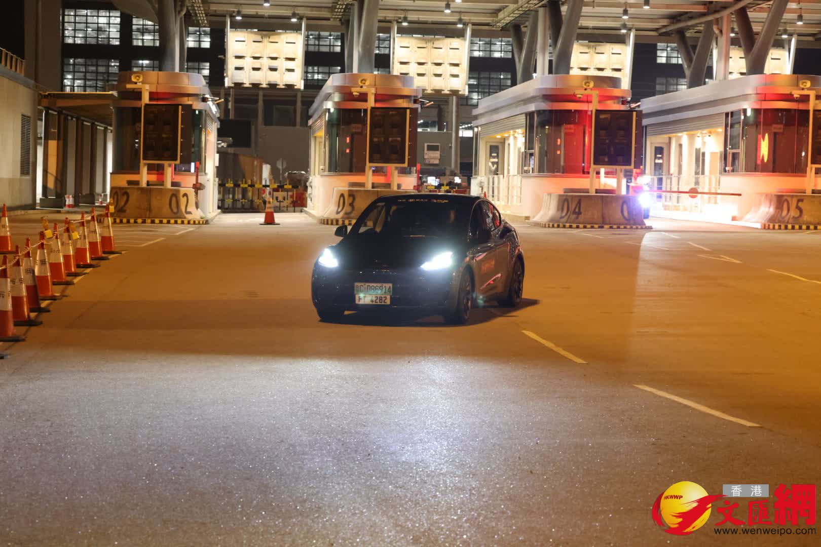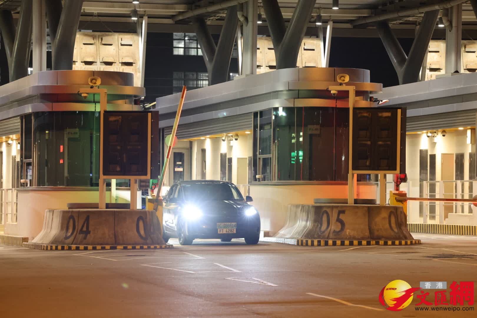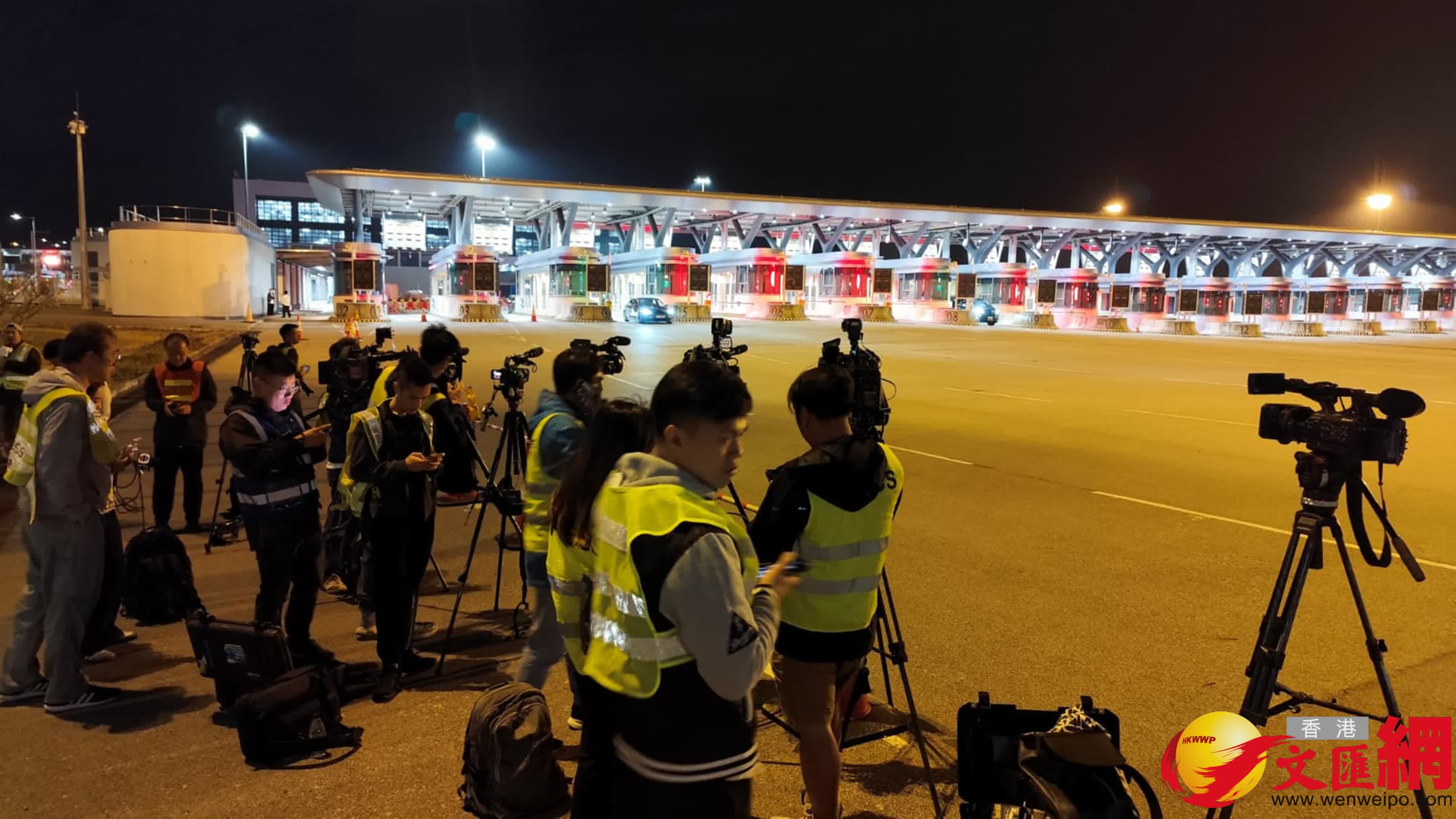 昨日深夜10時半,已有批傳媒聚集港珠澳大橋旅檢大樓。至今日凌晨零時過往,首輛粵車經港珠澳大橋車輛通關廣場的4號查驗亭抵港。