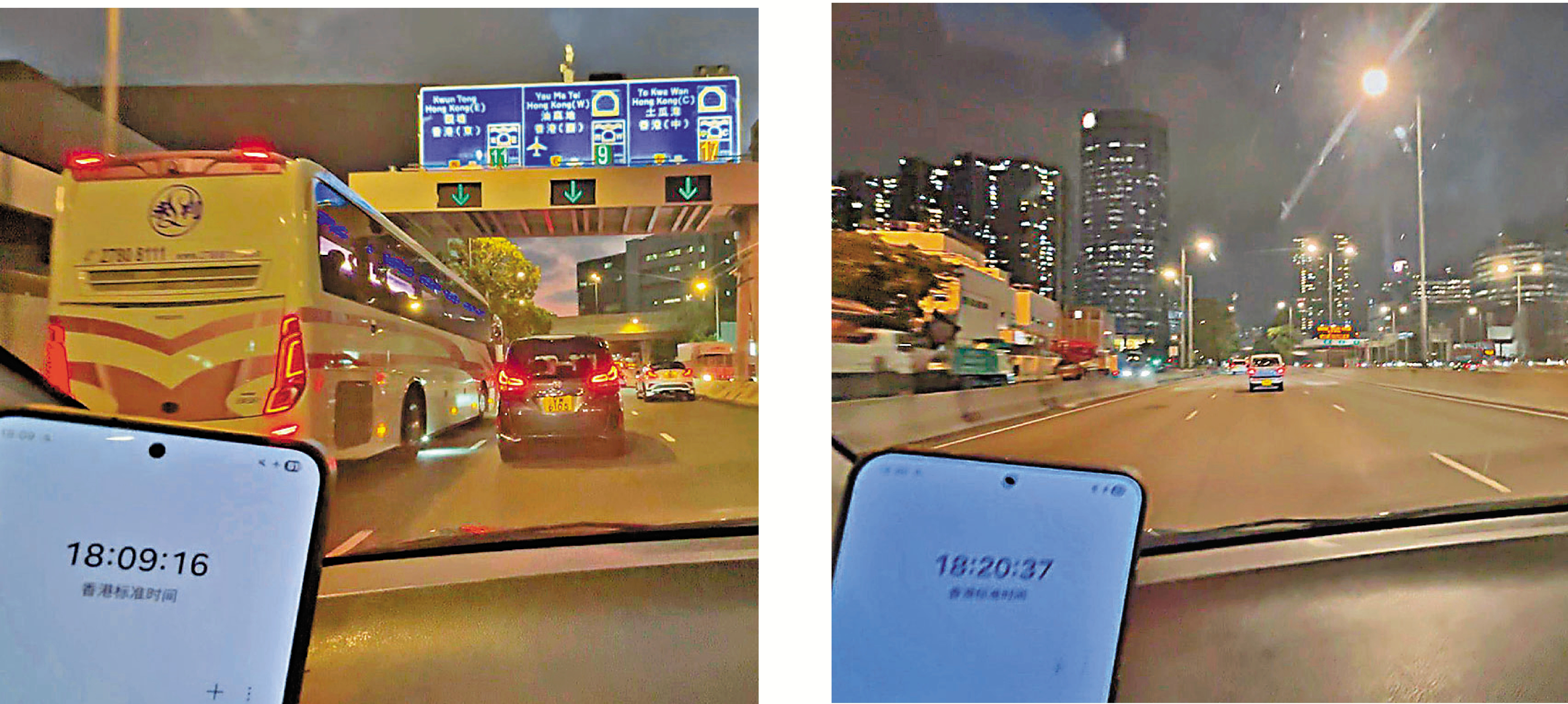 至傍晚下班繁忙時段記者再駕車實測,先是於下午5時34分從啟祥道出發,沿舊路前往港鐵奧運站,需時約17分鐘;其後採用繞道,只需11分鐘便抵達目的地,節省6分鐘。