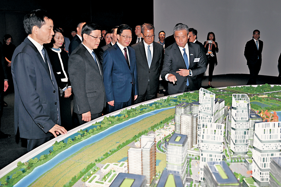 此外,李家超亦到訪位於港深創科園八號濕實驗室大樓的躍進空間,眺望連接港鐵落馬洲站及港深創科園的直連路,並聽取港深創科園公司行政總裁馬惟善介紹兩地園區建築,及為園區員工特設的各項便利措施,包括人才公寓、港鐵落馬洲站車費優惠和接駁專車等。