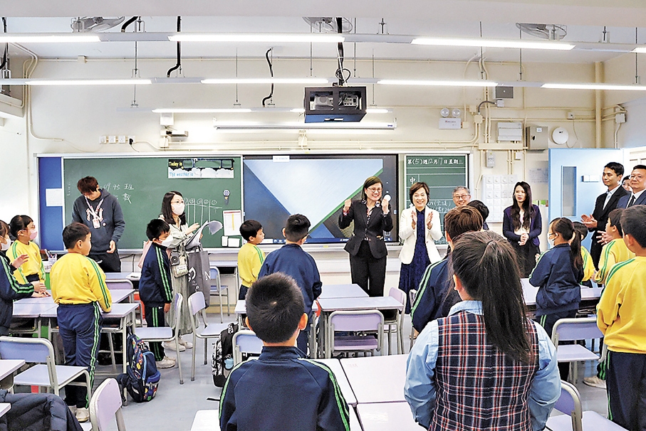 蔡若蓮日前到校了解大埔浸小復課狀況,對同學專注學習、積極投入的模樣深感欣慰。