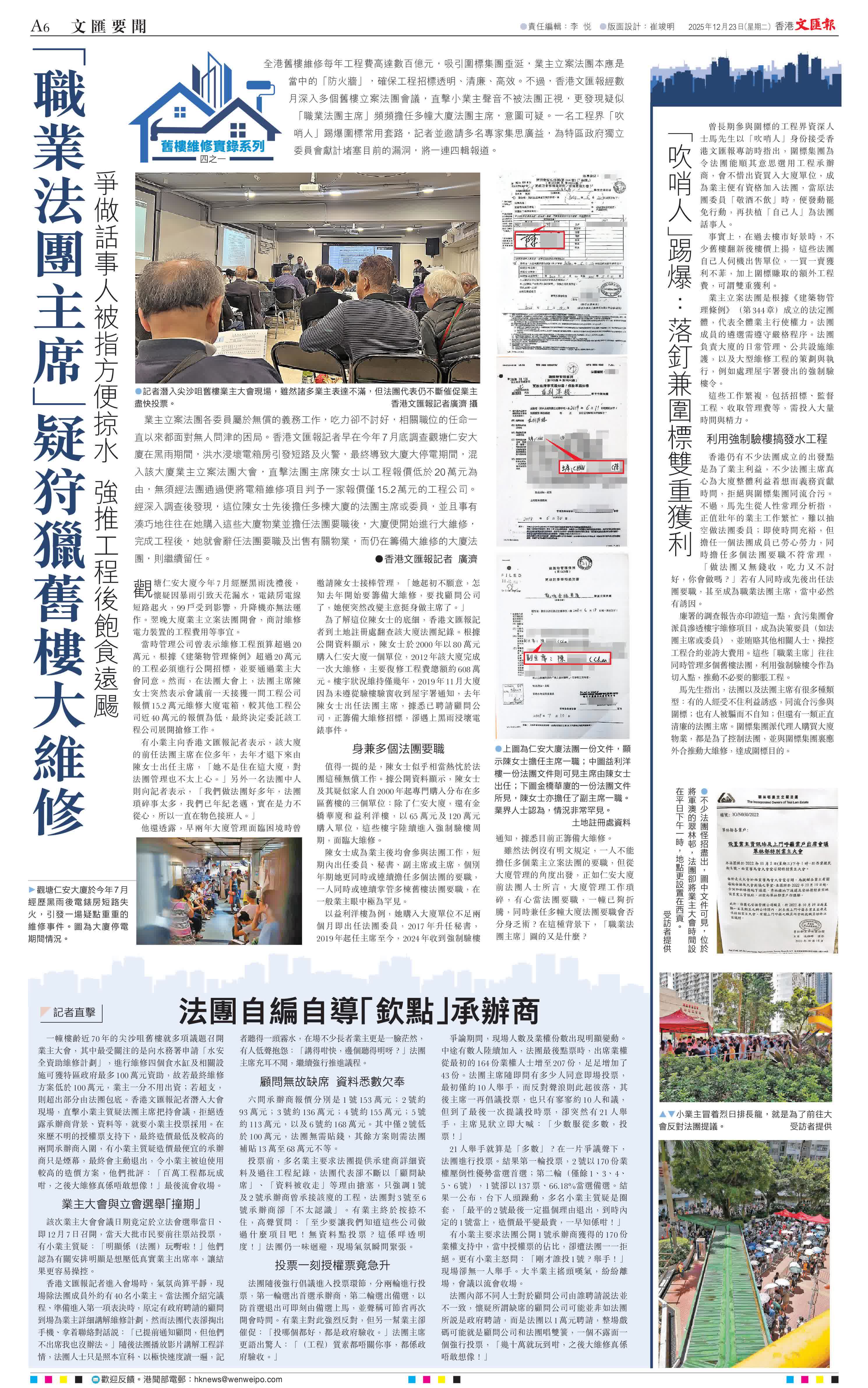 以益利洋樓為例,她購入大廈單位不足兩個月即出任法團委員,2017年升任秘書,2019年起任主席至今,2024年收到強制驗樓通知,據悉目前正籌備大維修。