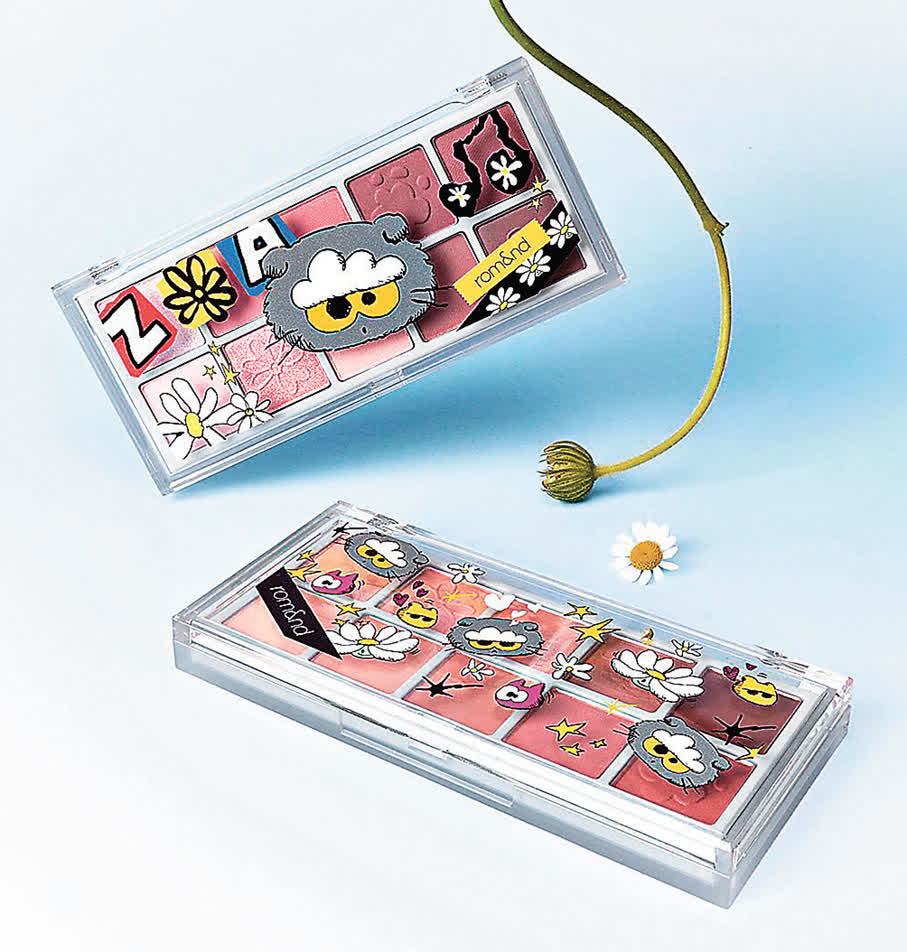 G-DRAGON的愛貓ZOA聯同一班朋友仔組成的ZO&FRIENDS夢幻組合,以可愛形象深受大家歡迎,每次推出的周邊產品甚至炒得有價有市。今次ZO&FRIENDS進軍美妝界,與人氣韓國美妝品牌rom&nd聯名推出彩妝,系列包含雙色貓爪護唇膏、氣墊粉餅、四色眼影盤、果汁腮紅球、果汁唇釉等。外殼印有ZOA和小夥伴小雛菊花 、小精靈圖案,即使用來收藏也相當得意。其中,唇釉還推出兩款特別色,分別是以烏雲為靈感#20灰白色與#38暗灰色,可以疊塗其他飽和的粉嫩色,混搭出柔和效果。