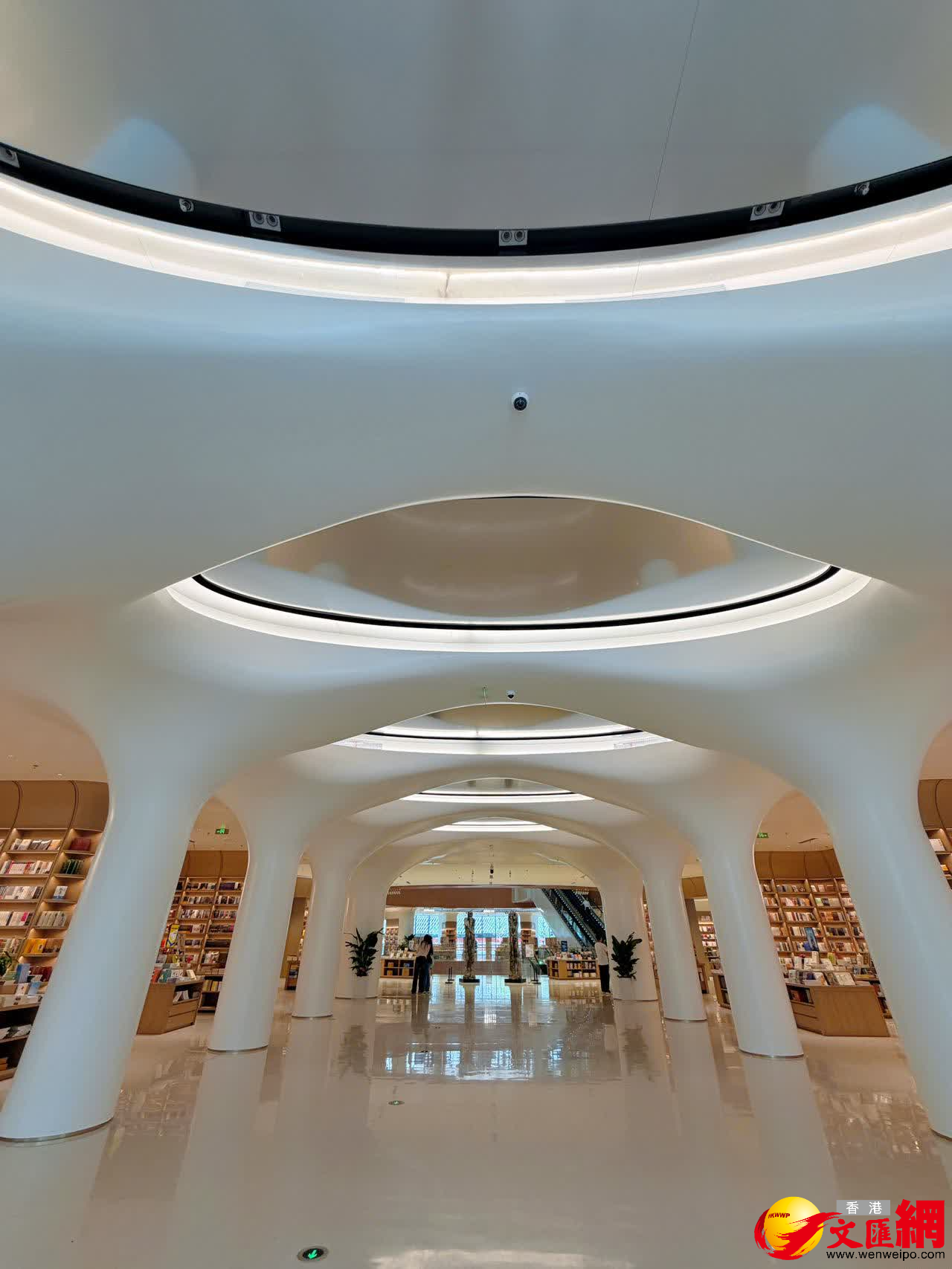 全球最大的實體書店「灣區之眼」則是另一處必打卡地標,13萬平米的空間、雙玉盤造型搭配270度全景星空花園,兼具閱讀氛圍與打卡屬性。北區L2的藝術花園觀景台可俯瞰深圳城市天際線,旋轉樓梯與智慧樹充滿未來感,隨手就能出片;L1「人文萬象」區域藏書豐富,陽光谷設計通透舒適,還能體驗書口印刷、AI聲音烏托邦等互動項目,偶遇問道雕塑展與香港唱片展。如果帶娃,還可前往B1的歡樂META空間,免費繪本與豐富手工活動能讓孩子盡情放電。灣區之眼搭乘地鐵5號線寶華站D出口直達,隔壁就是歡樂港灣,可一併遊玩。