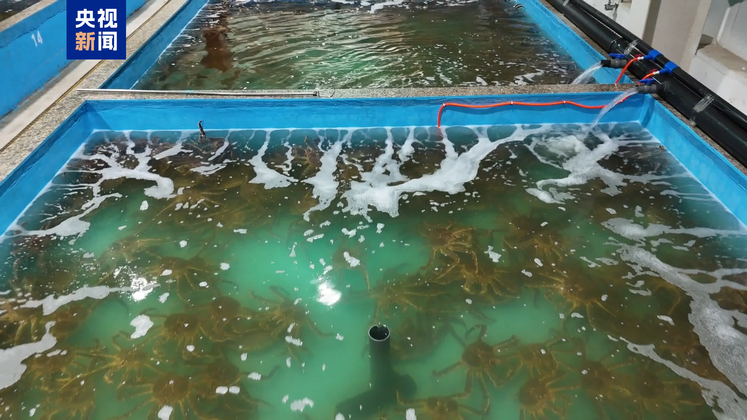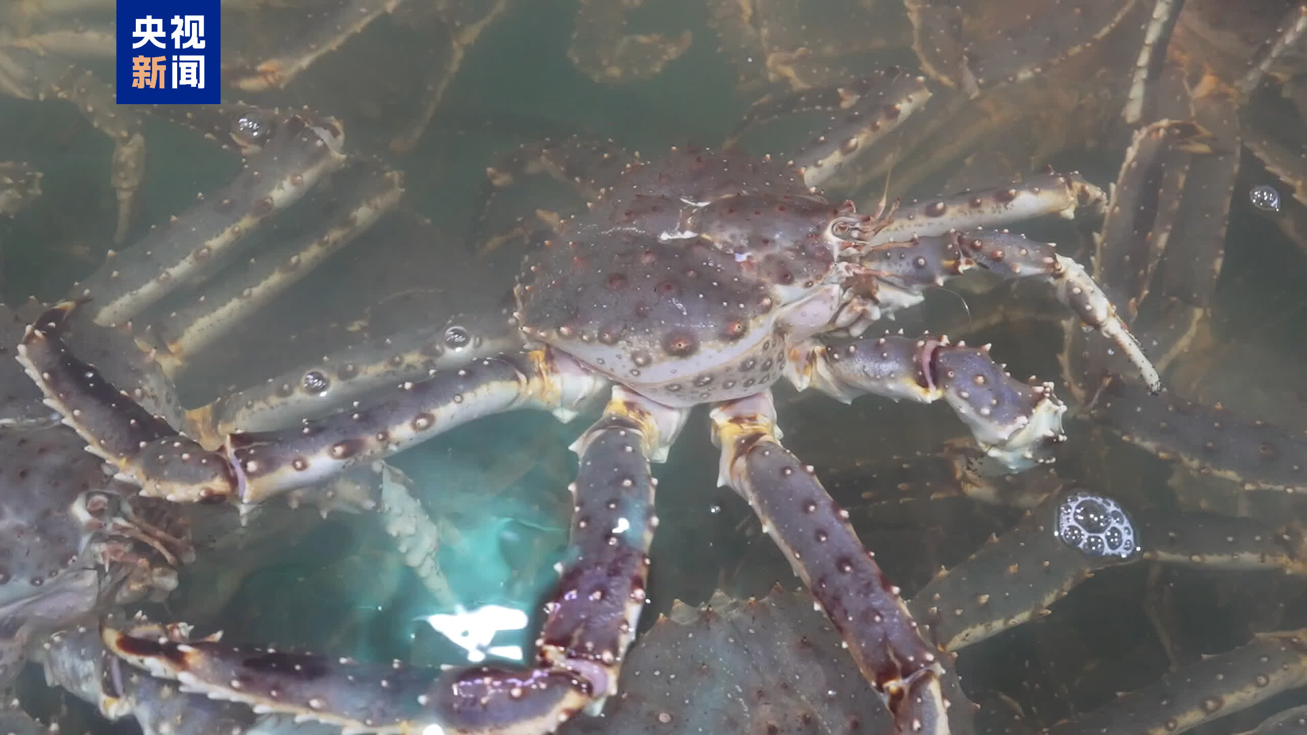 帝王蟹在通關後,一部分會立即發往市場,另一部分則會轉入監管區內的專業暫養池。池水環境模擬北冰洋原生海域,水溫控制在0-1℃之間,讓帝王蟹保持最佳活力,後續再根據訂單需求,隨時發往國內市場。