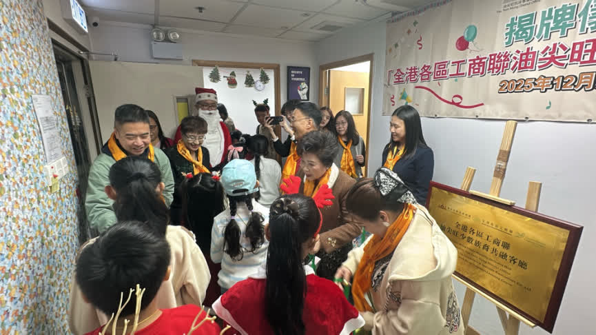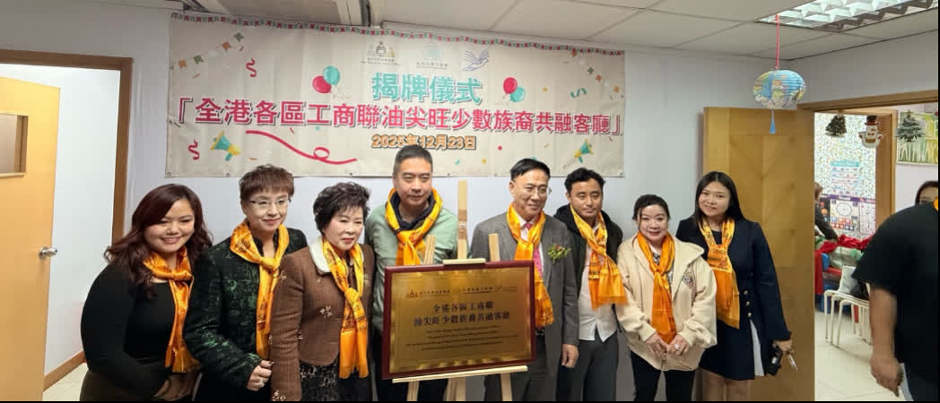 2025年12月23日下午,「全港各區工商聯油尖旺少數族裔共融客廳」揭牌儀式在油麻地廣基商業大廈2樓(全港聯物業)圓滿舉行。油尖旺民政事務處專員余健強太平紳士、全港各區工商聯首席會長兼共融客廳發起人盧錦欽博士 MH、全港各區工商聯永遠榮譽會長馮翠屏 BBS MH、油尖旺工商聯會長蔡雪亮女士、全港各區工商聯社會公益委員會主席陳琰華院士、全港各區工商聯青年企業家聯合會秘書長葉盈盈院士等代表,與 Excel Pathways Learning Center 聯合創始人 Gurung Taral、Gurung Relina,以及 50 位少數族裔小學生、中學生齊聚一堂,共同見證這一助力種族共融、關愛青少年成長的重要時刻。