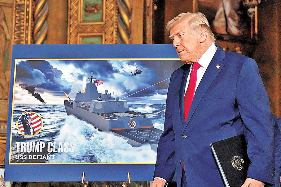 香港文匯報訊 美國總統特朗普周一(12月22日)在佛羅里達州海湖莊園宣布,美國將打造全新的黃金艦隊,包括新的「特朗普級」戰列艦(Trump class Battleship),用以取代在其看來「老舊且過時」的美國艦隊。美媒指出,在現代海軍艦隊中,戰艦角色已經式微,質疑特朗普斥巨資建造大型戰列艦,實用意義遠不及其試圖炫耀個人形象的象徵意義。