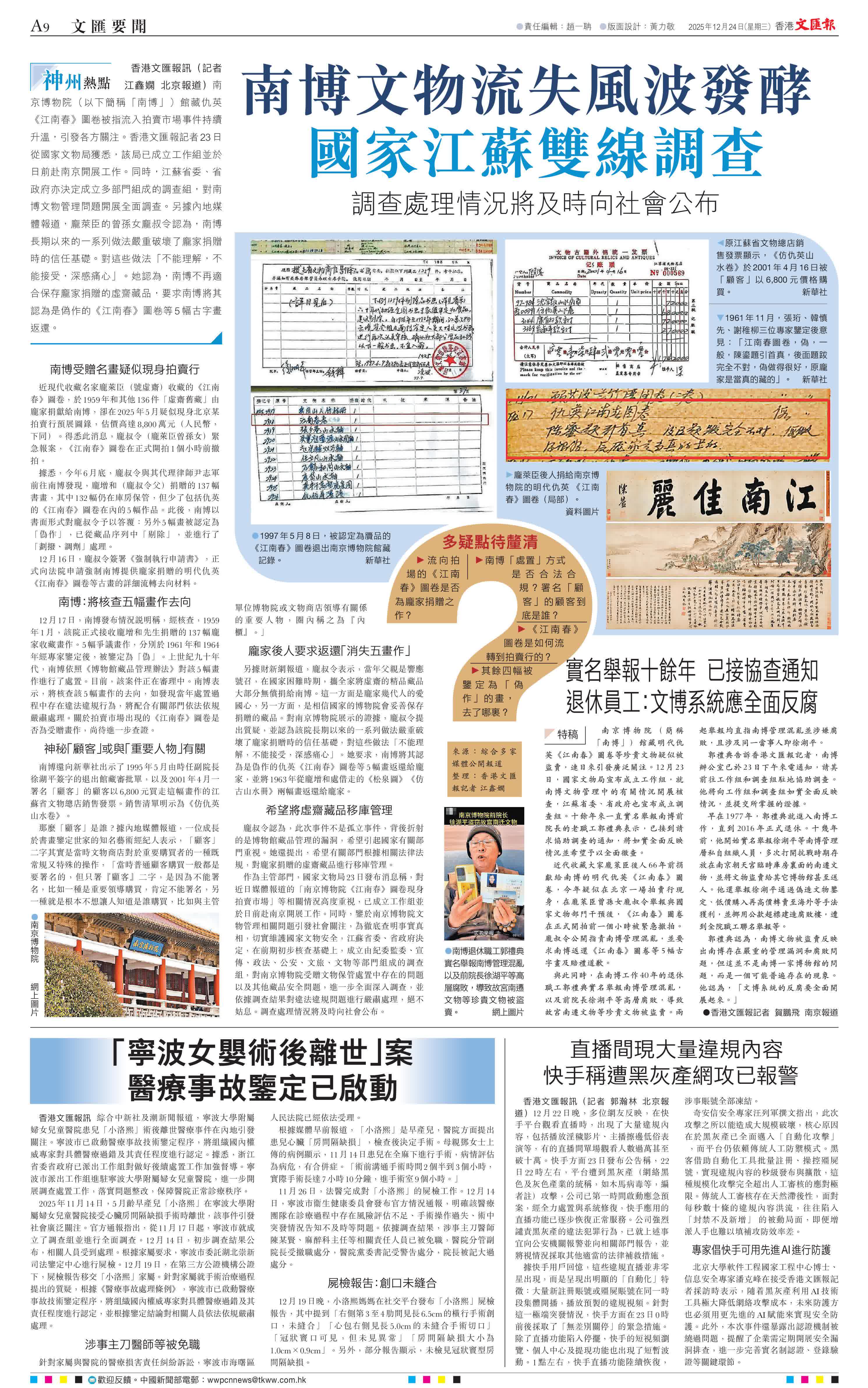 香港文匯報訊(記者 江鑫嫻 北京報道)南京博物院(以下簡稱「南博」)館藏仇英《江南春》圖卷被指流入拍賣市場事件持續升溫,引發各方關注。香港文匯報記者23日從國家文物局獲悉,該局已成立工作組並於日前赴南京開展工作。同時,江蘇省委、省政府亦決定成立多部門組成的調查組,對南博文物管理問題開展全面調查。另據內地媒體報道,龐萊臣的曾孫女龐叔令認為,南博長期以來的一系列做法嚴重破壞了龐家捐贈時的信任基礎。對這些做法「不能理解,不能接受,深感痛心」。她認為,南博不再適合保存龐家捐贈的虛齋藏品,要求南博將其認為是偽作的《江南春》圖卷等5幅古字畫返還。