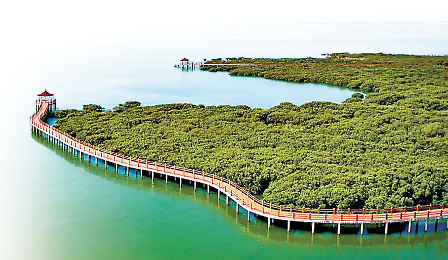至於鄰近茂名的湛江,位於湛江灣的「特呈島」在湛江霞山區,是一座美麗海島,被稱之為「湛江的明珠」,面積3.6平方公里,海岸線長7.4公里,下轄7個自然村,現有村民約5,000人。特呈源於古越語,有吉祥、和諧之意,該島有濃厚歷史文化,明朝第一才子解縉曾到訪該地,賦詩《題特呈山溫通閣》;該景區森林覆蓋率超86%,水質達國家一級標準,是南國避暑勝地和原生態旅遊目的地。從霞山碼頭乘船10多分鐘便可抵達。島上有逾600年歷史的紅樹林古樹群,為眾多的紅樹林生物如招潮蟹、彈塗魚、候鳥等提供食糧,此外,特呈島上建築風格多樣,有傳統的漁家小屋及現代別墅,中西合璧。