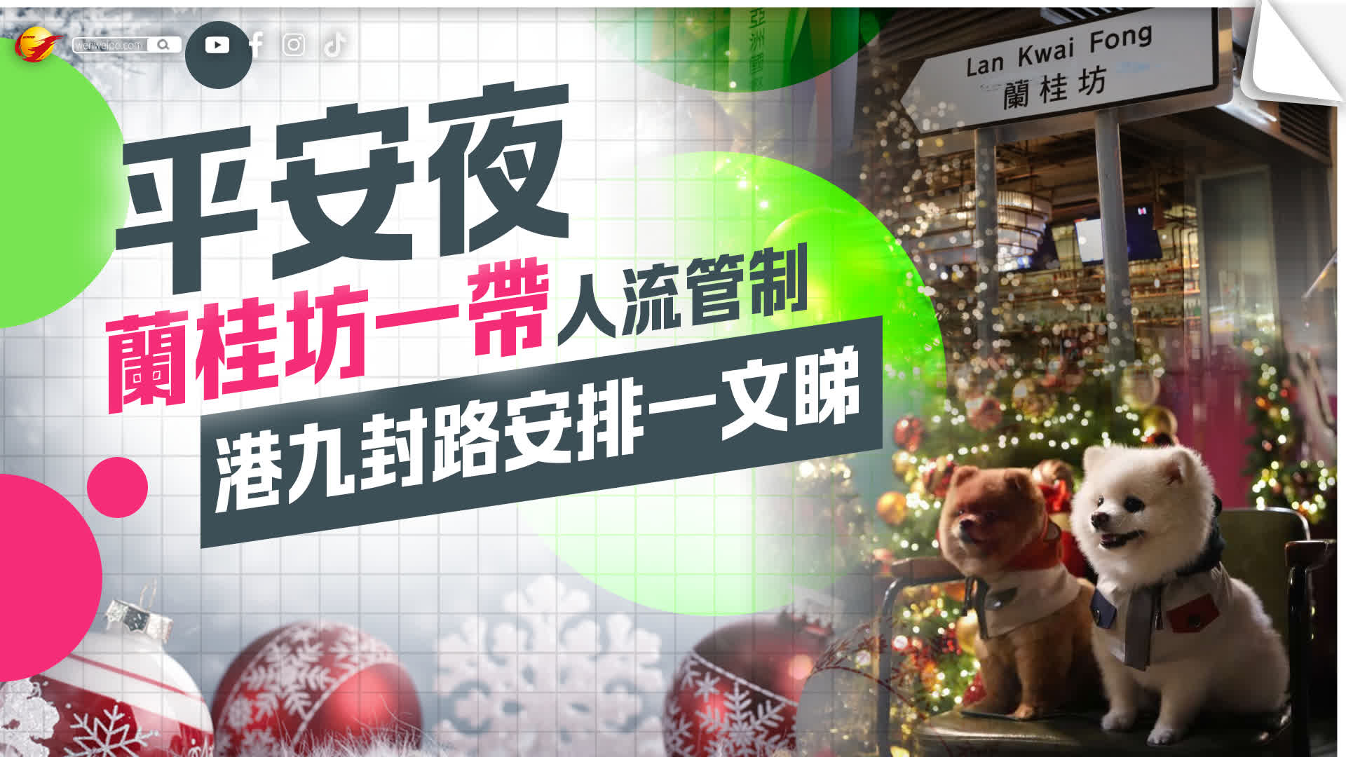 警方預計,在平安夜及聖誕節期間,將有大批市民前往蘭桂坊一帶,將視乎現場情況實施人流安全管理措施。市民應保持忍讓,照顧同行小童及長者,並遵從現場警務人員的指示。警方亦提醒市民不應攜帶噴霧劑,或在該區噴灑噴霧劑,以免對在場人士造成危險。
