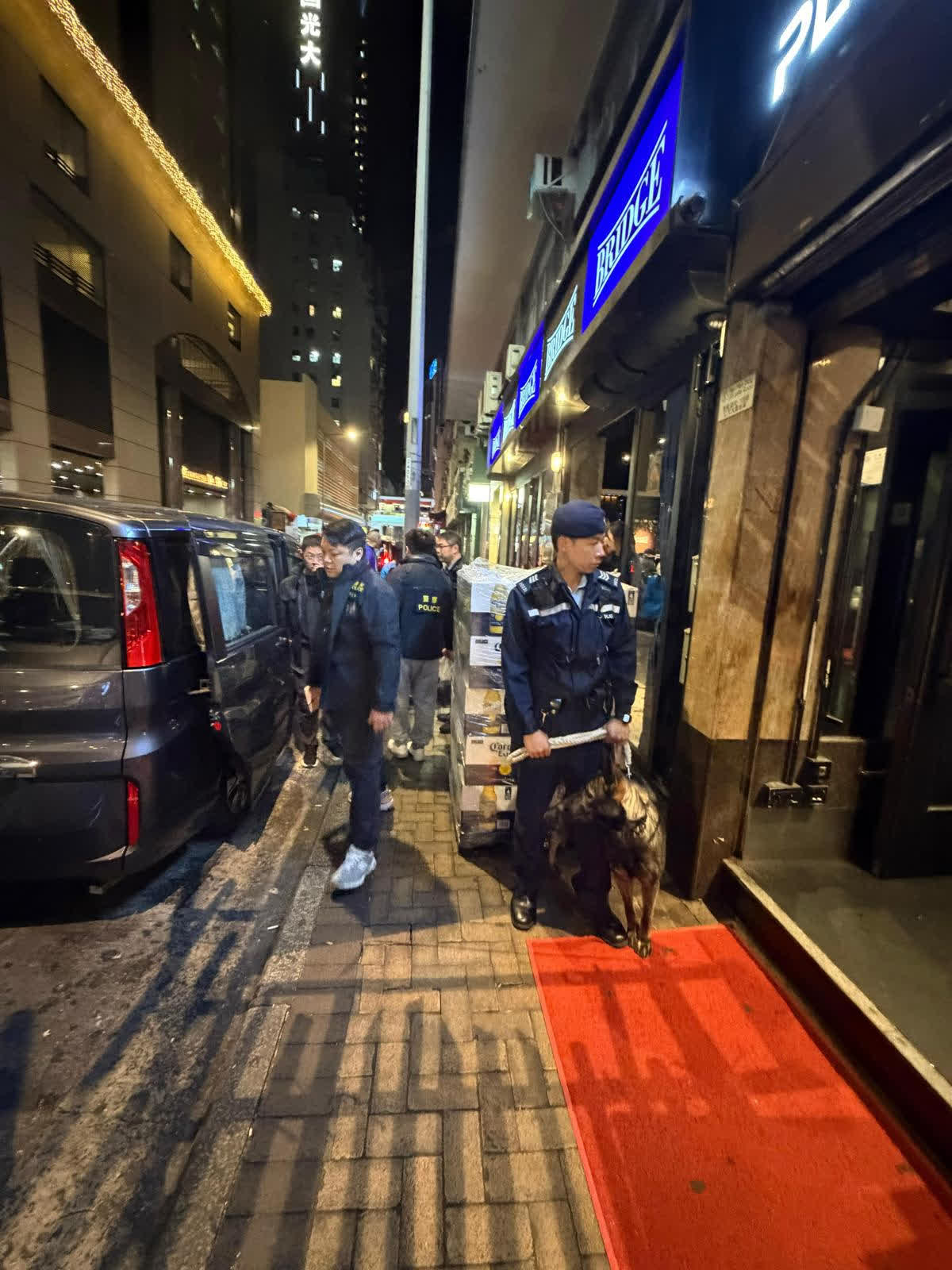 灣仔警區反三合會行動組經翻查閉路電視影像及情報分析後,昨晚於灣仔酒吧區拘捕一名非華裔男子及5名非華裔女子,年齡介乎35至56歲,涉嫌串謀盜竊。行動中,人員檢獲多部電子支付終端機、交易收據、閉路電視硬碟及一些現金等證物。