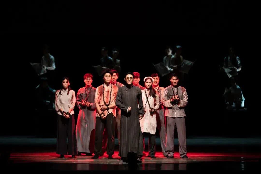 作為舞台藝術與電影美學交融的典範之作,《永不消逝的電波》的舞美設計與敘事手法盡顯匠心。舞劇打破傳統單一敘事脈絡,創造性混用插敘、倒敘、閃回、平行敘事等電影式結構,26塊可移動景片將舞台分割為多個並行時空,懸疑感拉滿。舞台之上,交錯的光線從深處蔓延開來,朦朧的影像層層浮現,整個劇場彷彿化作一卷時空交錯的膠片,為觀眾帶來堪比電影大片的視覺震撼。極致的細節堆砌,成就了這部作品長演長紅的舞台奇跡。