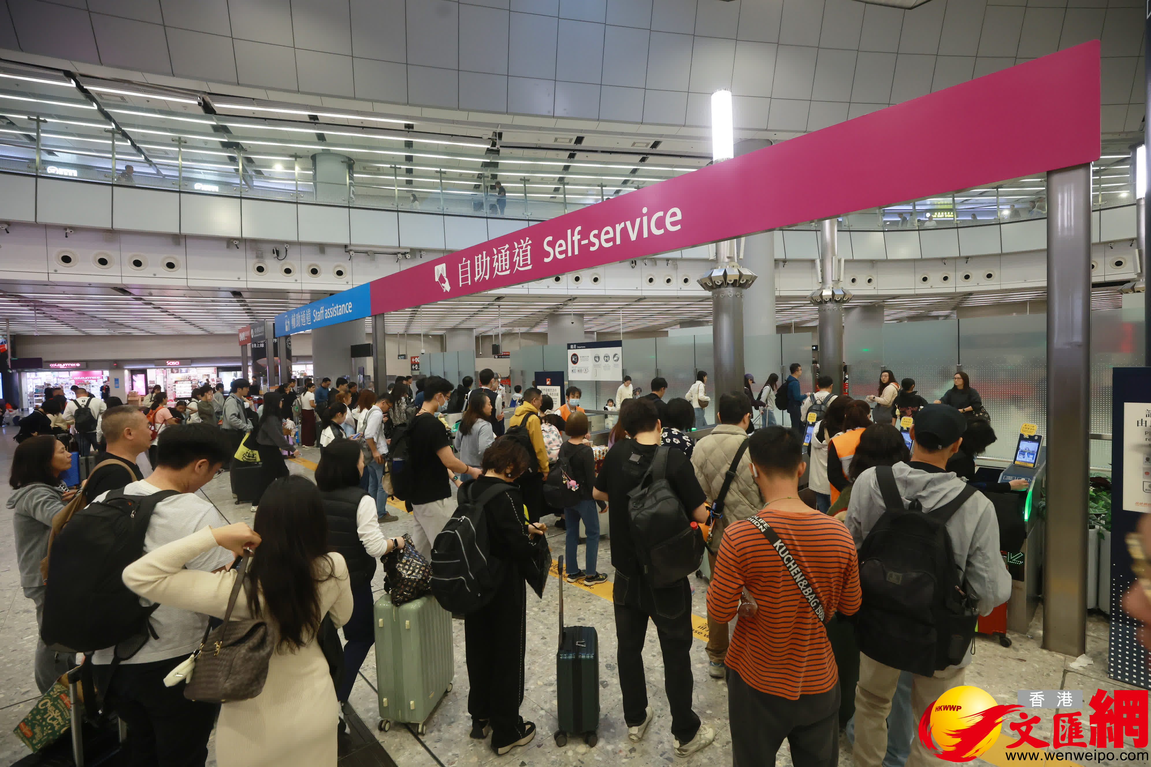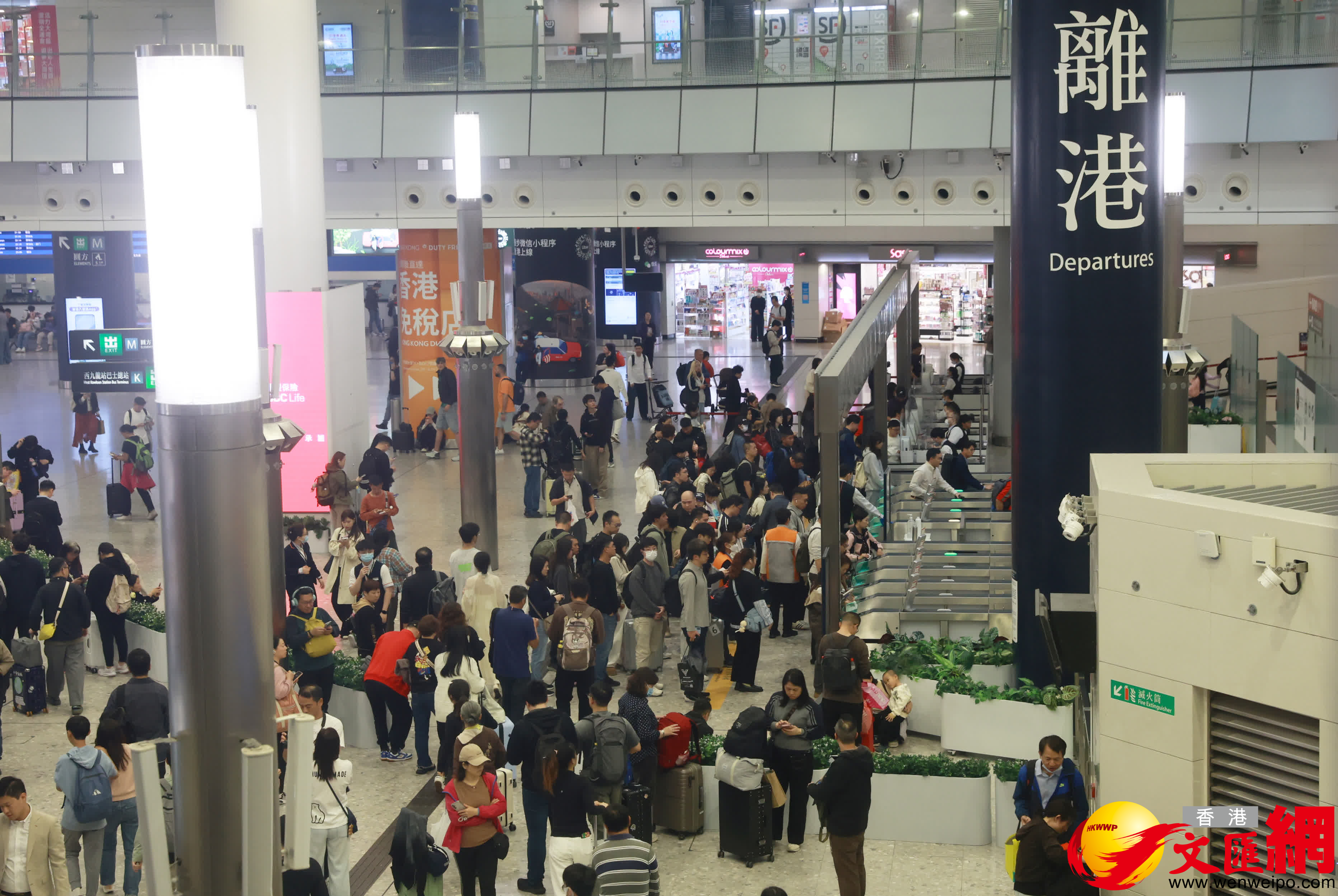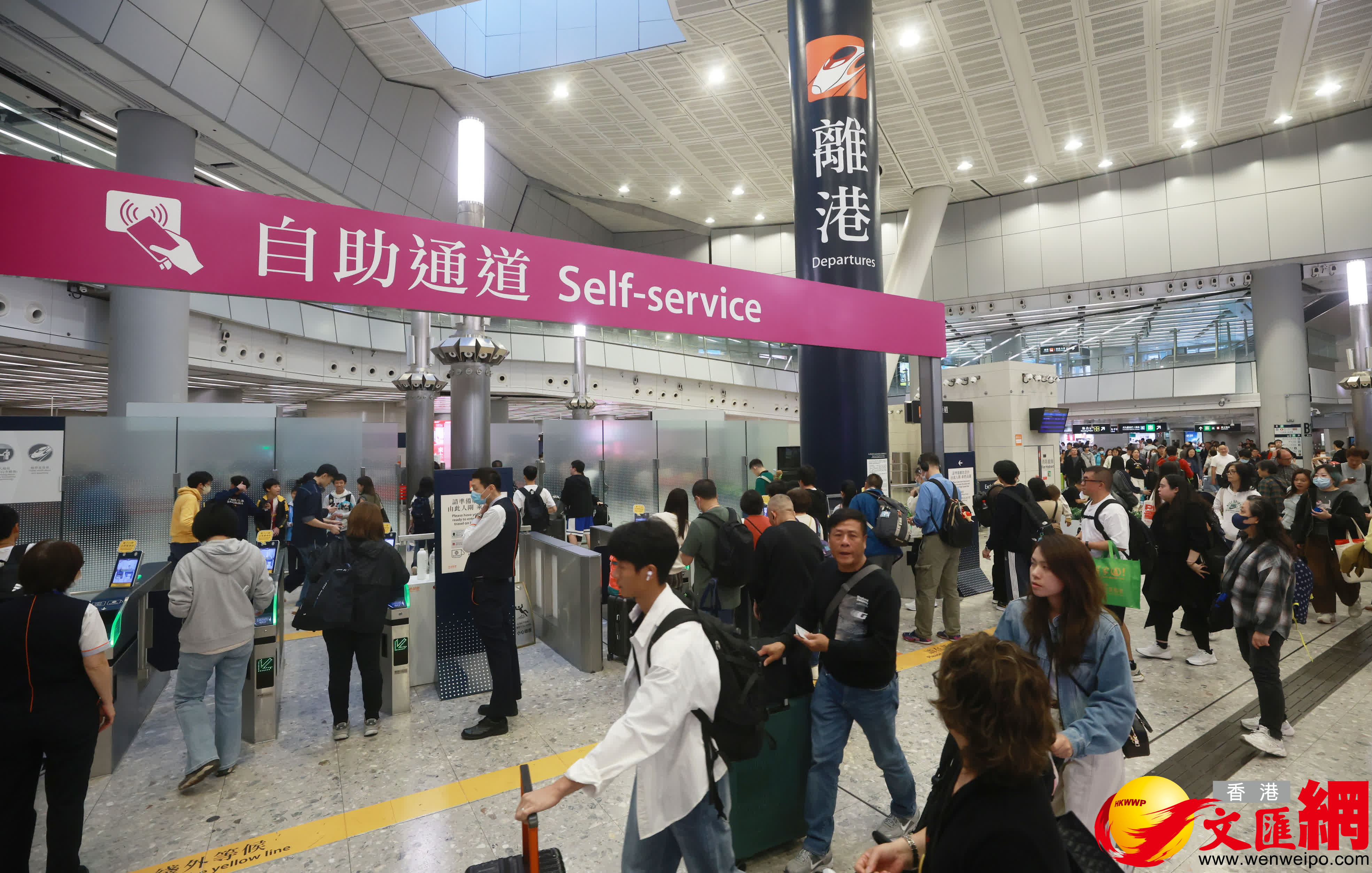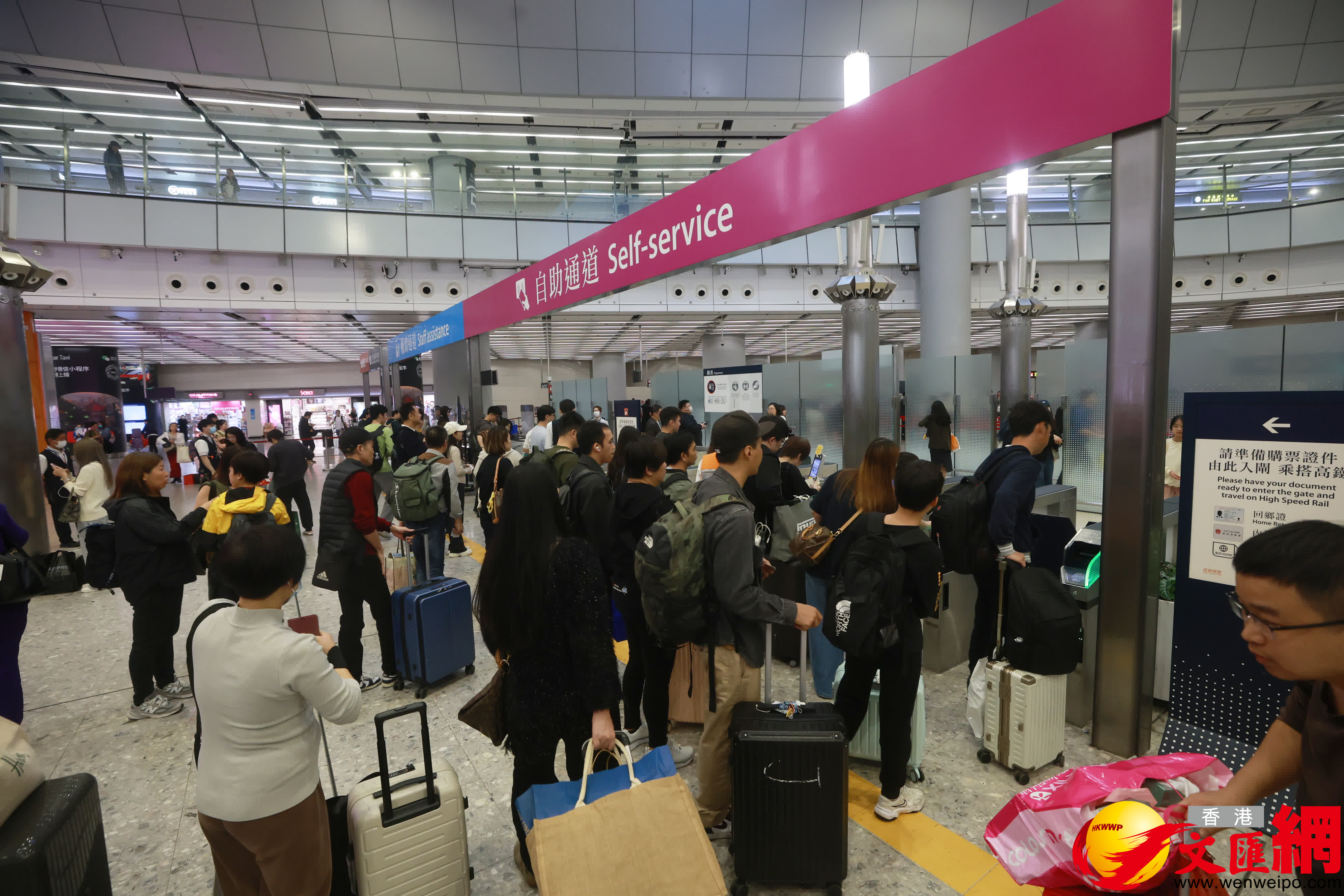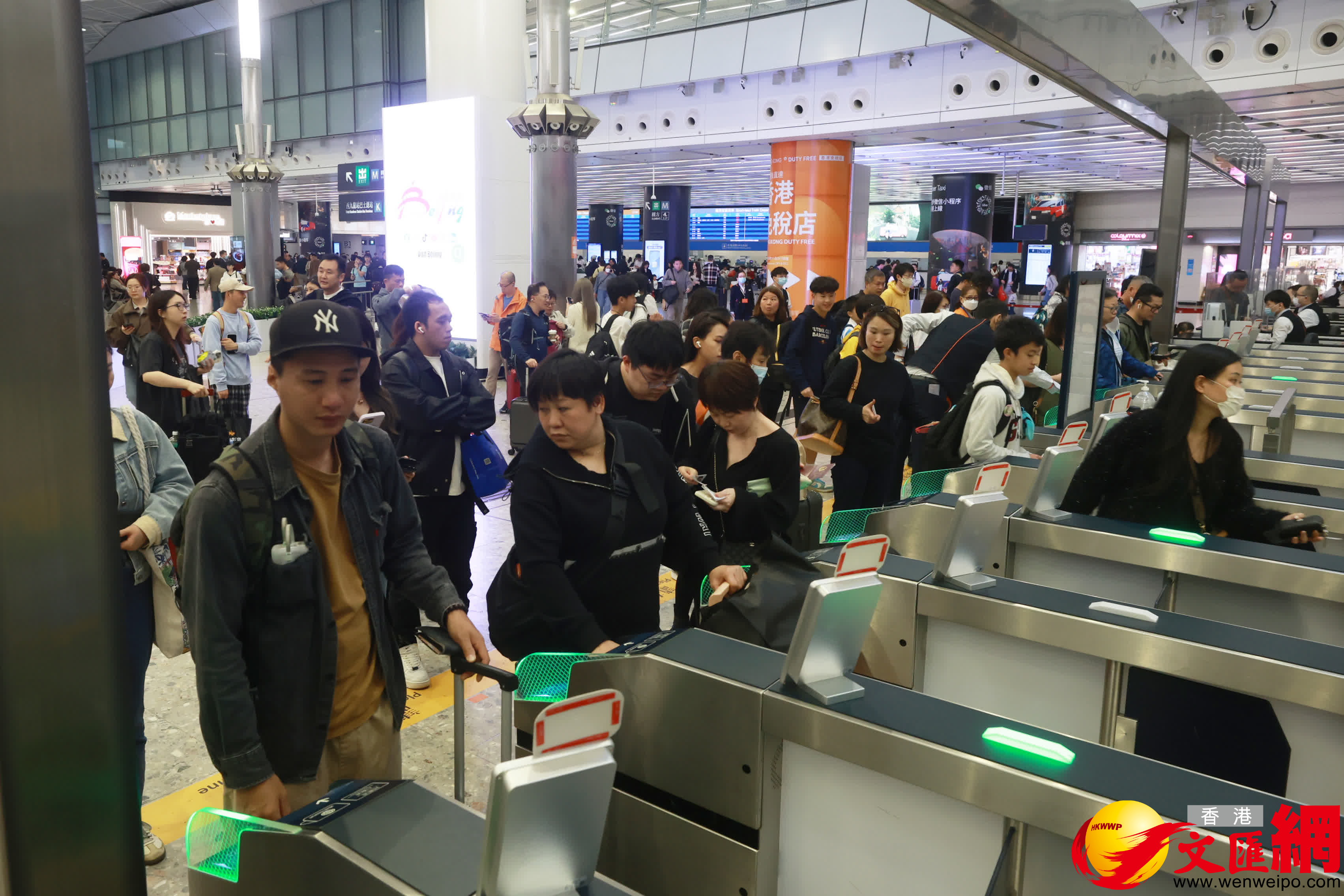 聖誕節連周末長假前夕,不少市民今日(24日)離港外遊,高鐵西九龍站人頭湧湧,閘口位置一度出現人龍。(香港文匯報記者郭木又攝)