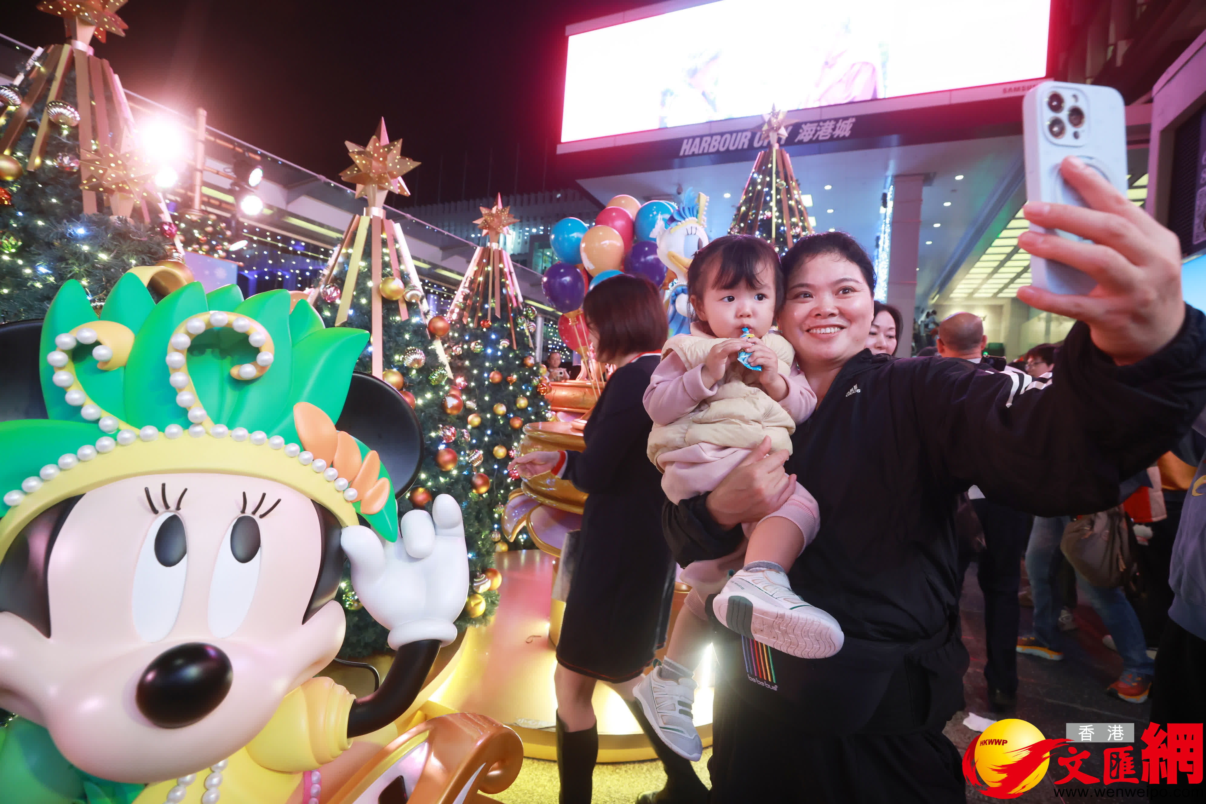 聖誕節期間,尖沙咀海港城化身成節日慶典熱點。商場內外布置了璀璨的聖誕裝飾,並舉辦一系列慶祝活動,吸引大批市民及遊客到訪,感受濃厚的節日氣氛。(香港文匯報記者郭木又攝)