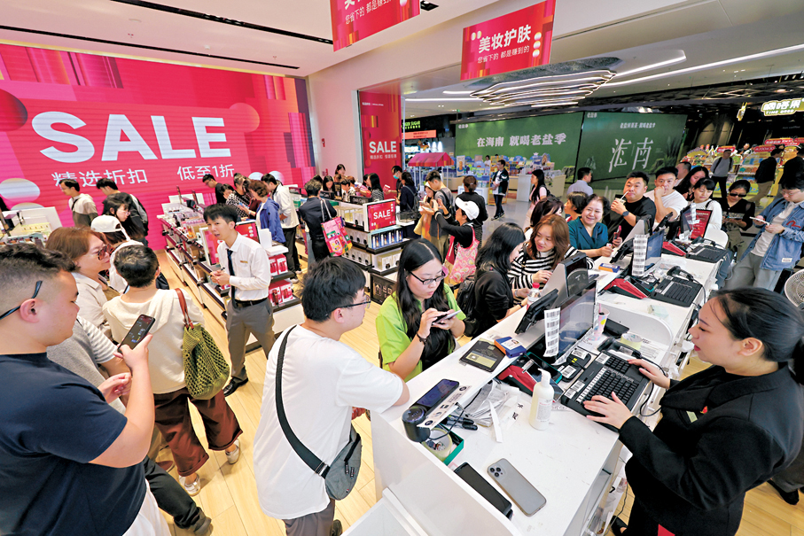 近幾日,三亞各大免稅店內,消費者絡繹不絕。蘋果門店前長隊蜿蜒,華為熱銷機型一度售罄——新款iPhone 17 Pro系列最高優惠超2,000元,華為Mate X6疊加消費券立省1,700元。免稅黃金櫃枱前人頭攢動,每克較市場價低166元的讓利,讓一件30克的古法黃金飾品節省近萬元。