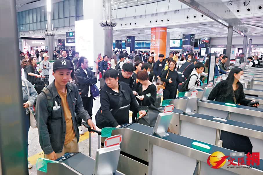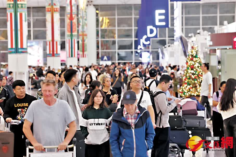 (香港文匯報記者 劉明)香港國際機場昨日迎來出入境人潮,其中離境大堂擠滿趁假期外遊的巿民,航空公司櫃枱前擠滿推着行李辦理登機手續的巿民,他們外遊目的地包括韓國、日本、越南及台灣地區,亦有巿民到內地度假。機場管理局預計聖誕及新年假期,每日最多約有1,200班航班升降,單日客流最高峰達20萬人次,機場停車場所有長期停車位昨日一度泊滿車。西九高鐵站亦人頭湧湧,香港旅遊業議會總幹事楊淑芬估計,聖誕假期約有1,500個旅行團離港,當中六成是往內地的高鐵團。