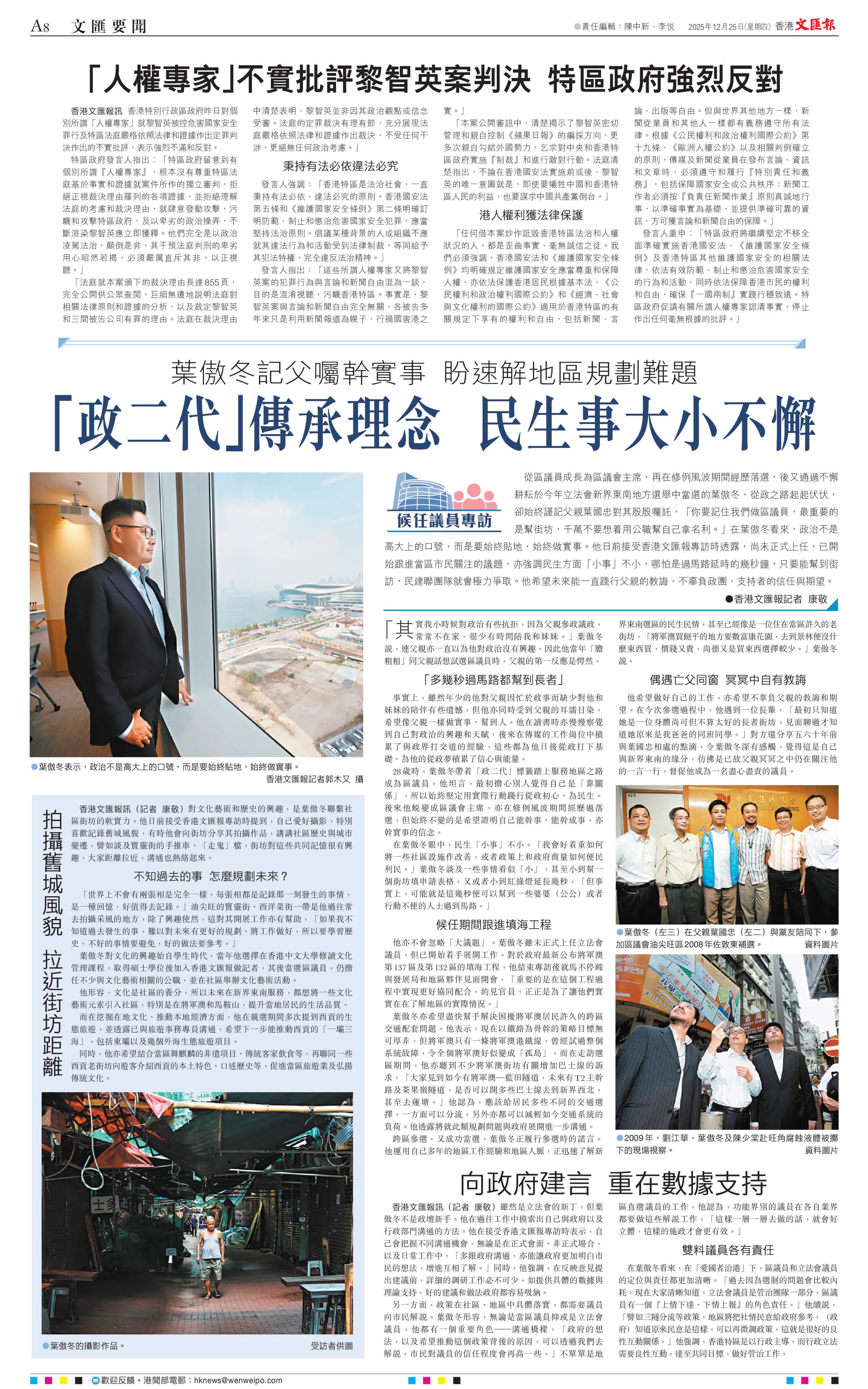 另一方面,政策在社區、地區中具體落實,都需要議員向市民解說。葉傲冬形容,無論是當區議員抑或是立法會議員,他都有一個重要角色——溝通橋樑,「政府的想法,以及希望推動這個政策背後的原因,可以透過我們去解說,市民對議員的信任程度會再高一些。」不單單是地區直選議員的工作,他認為,功能界別的議員在各自業界都要做這些解說工作,「這樣一層一層去做的話,就會好立體,這樣的施政才會更有效。」