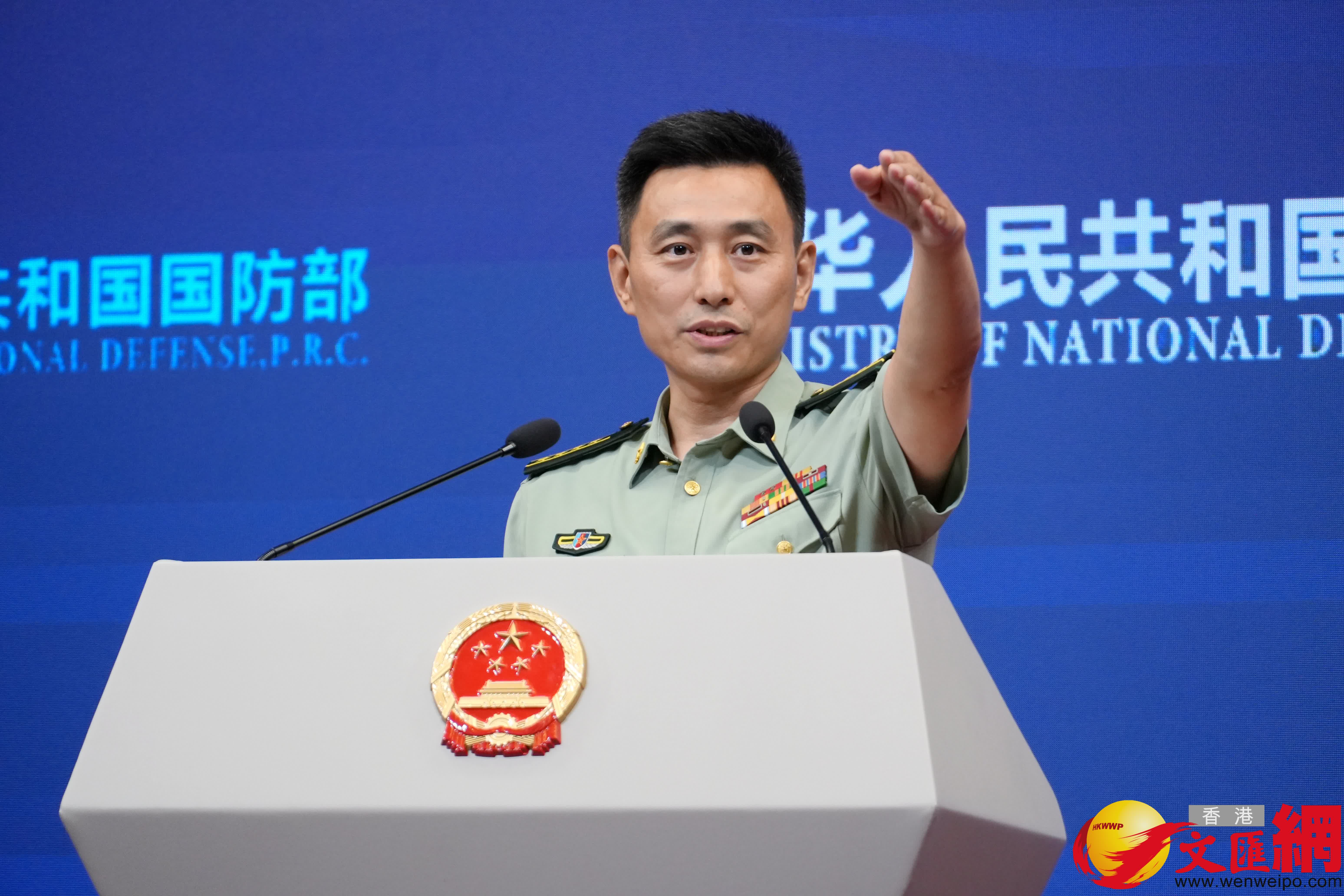 12月25日下午,國防部舉行例行記者會,國防部新聞發言人張曉剛大校答記者問。