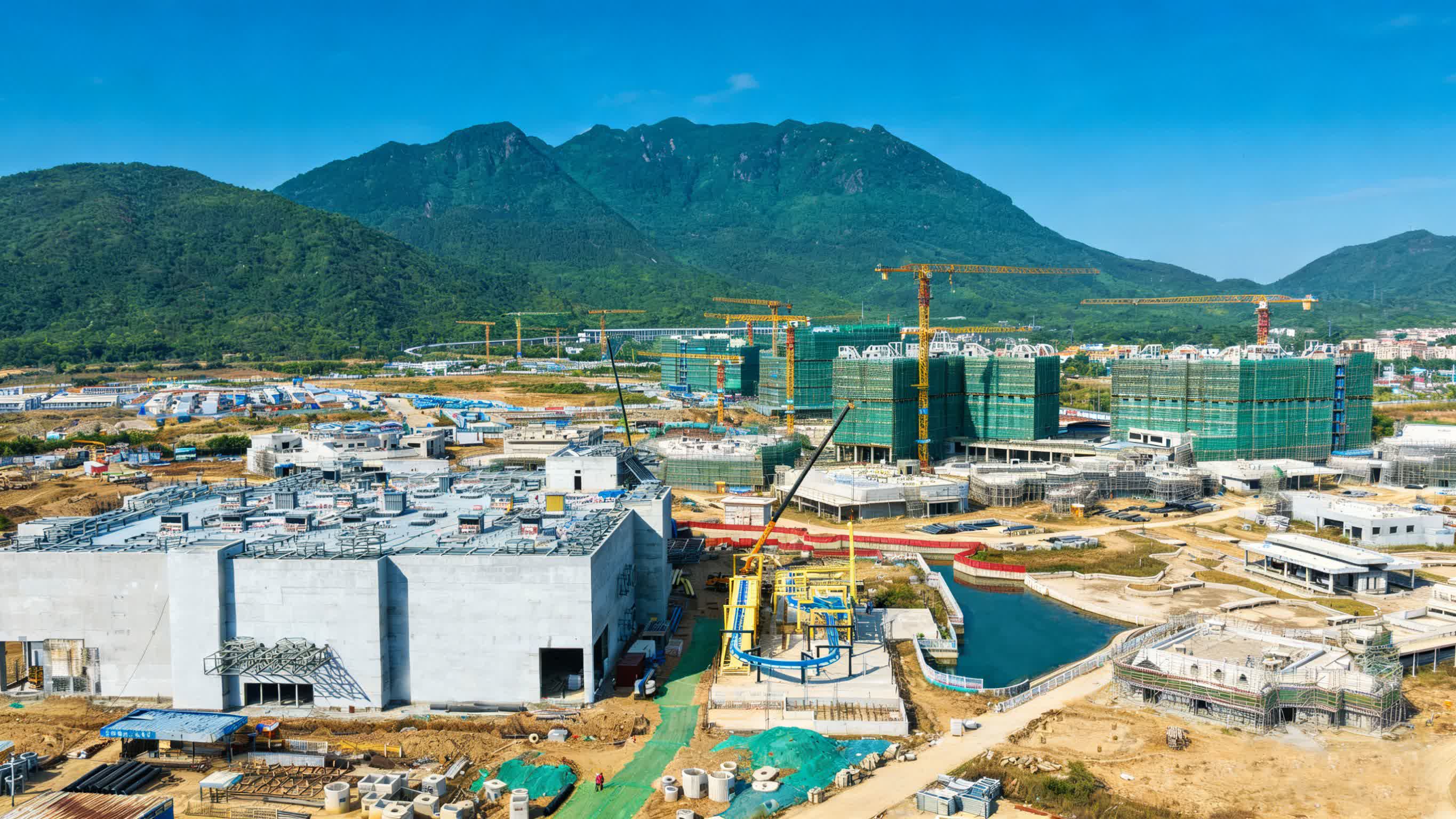 回望過去一年,深圳樂高樂園建設持續提速,多個關鍵節點順利達成,截至目前,主題樂園內50個單體建築已全部封頂;核心主題區「創想世界」屋面板安裝工作圓滿完成,區域內標誌性樂高大人仔主體結構搭建完畢;三大主題酒店全面進入內部機電安裝階段,配套商業街也已啟動施工,整體工程進度符合預期。