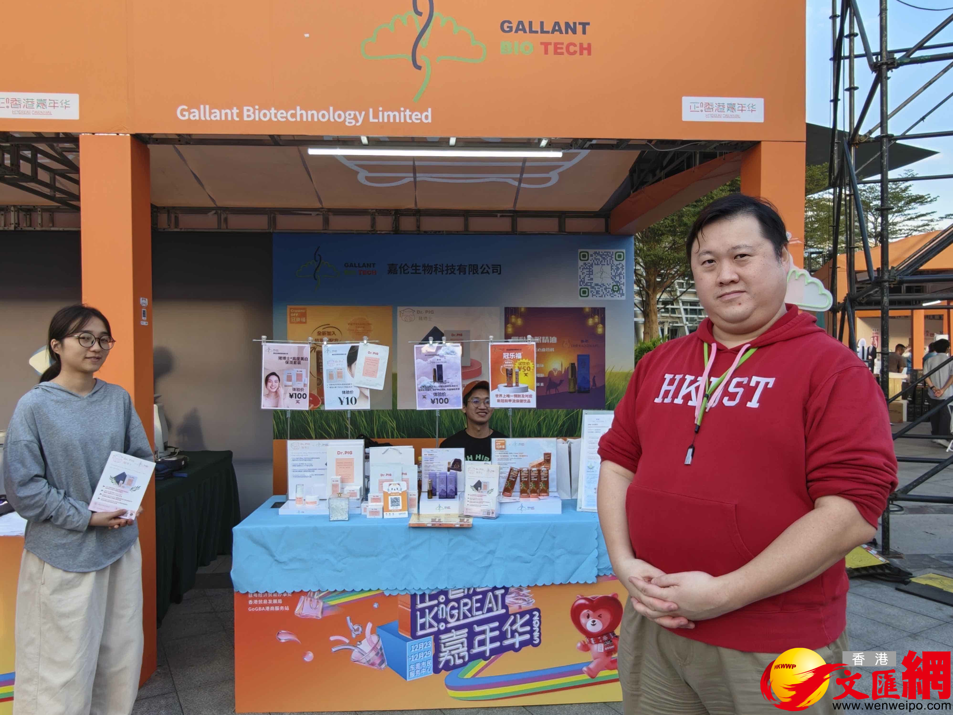 在Gallant Biotechnology Limited的展位上,冠樂福西柚泡騰片、豬博士草本精華面膜、雅歌哪噠精華油等產品以極具性價比的價格吸引着過往的女性消費者。品牌創始人陳嘉倫介紹,公司脫胎於港科大的創業項目,正式成立後選擇在中山落戶。「當地給予了創業園區的租金優惠,深中通道開通後我往返香港也十分方便。」 他希望通過參展了解東莞的消費市場,為公司拓展內地業務做調研。