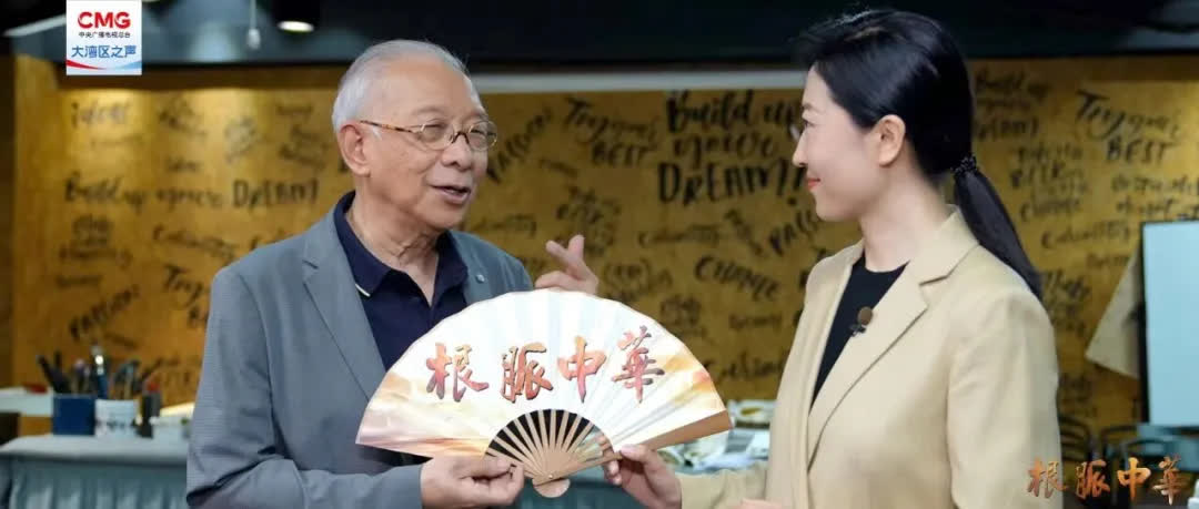 2023年12月,《根脈中華》欄目開播時,梁君度先生為我們贈送了欄目題字,在《根脈中華》開播兩周年之際,我們也為梁君度先生送去了一份特殊的禮物——印有梁先生為欄目題字的扇子。