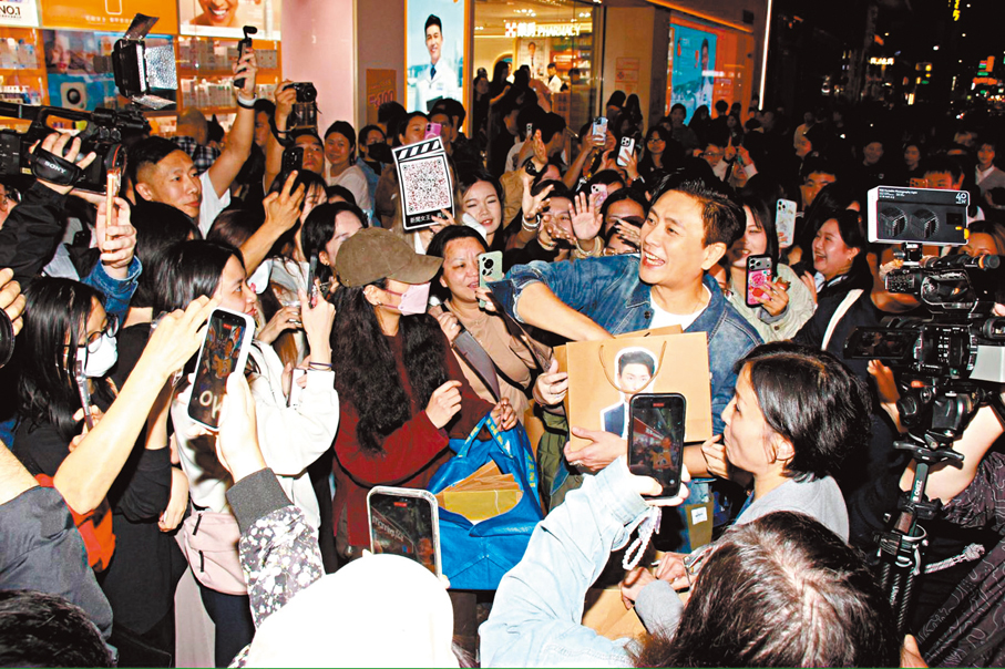 香港文匯報訊(記者 達里)入圍《萬千星輝頒獎典禮2025》「最佳男主角」10強的黃宗澤(Bosco),前晚平安夜落區到旺角進行拉票,吸引不少粉絲及市民圍觀。Bosco預備了印有他樣子的「解壓神器」壓力球送給市民,不少粉絲都向他高呼「視帝」,令Bosco既開心又尷尬。剛巧戴祖儀也在附近拉票,她手持自己的應援牌來「踩場」,場面惹笑。