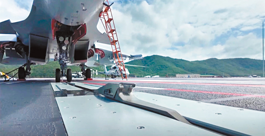 福建艦展現出的中國航母跨越式發展不僅體現在電磁彈射系統上,還體現在航母的整體布局上。福建艦艦島更小,甲板更寬大平直。暴宇介紹,福建艦為平直通長甲板,飛行甲板採用三彈射器加一套阻攔裝置的布局,對各種艦載機起飛、阻攔着艦的工況兼容性更強。