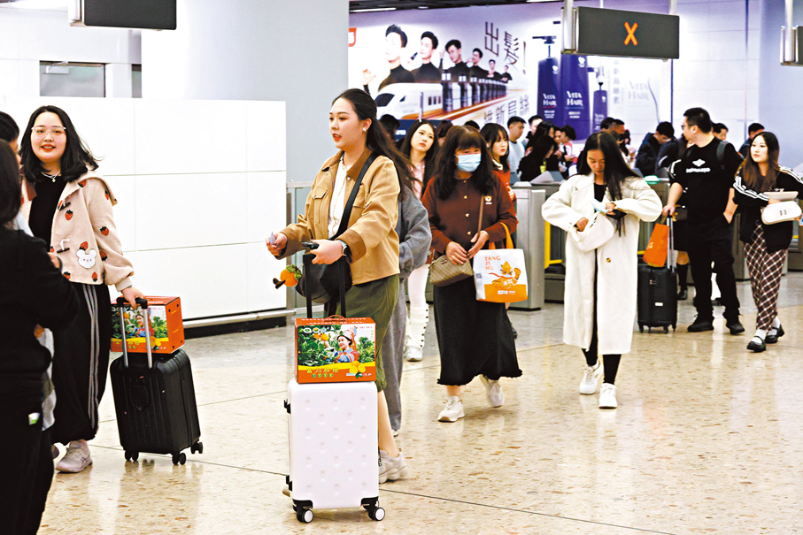 聖誕節昨日來臨,中環、尖沙咀及西九龍等地換上聖誕新裝,璀璨的聖誕燈飾及主題裝置,為這個節日添上獨特魅力,吸引來自四面八方的旅客。特區政府入境處指出,截至昨晚9時,有34.7萬人入境香港,當中7.9萬為內地旅客,4.3萬為其他地區訪客。香港文匯報記者昨日在西九文化區聖誕小鎮、中環聖誕天地等地直擊,不少旅客和留港消費的巿民到處打卡,現場水洩不通,其中在西九金光聖誕樹打卡更需輪候逾90分鐘。有旅客專程來港歡度聖誕,亦有內地旅客表示內地無聖誕假期,昨日專程請假來港感受香港濃烈的聖誕氣氛,也有內地旅客考慮在港慶祝跨年。