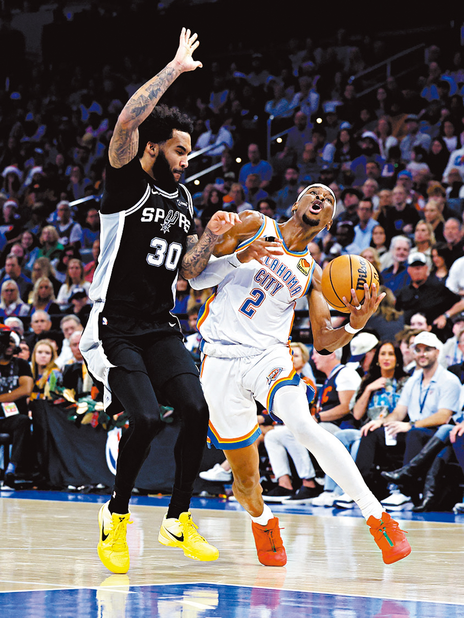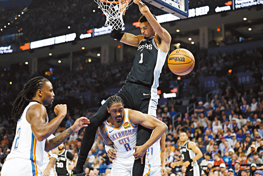 香港文匯報訊(記者 張發兒)馬刺昨日在NBA聖誕大戰再度成為雷霆的剋星,作客以117:102擊敗衛冕冠軍雷霆,在兩星期內三度擊敗對手。雷霆球星、上季常規賽最有價值球員(MVP)亞歷山大賽後直言馬刺是更出色的球隊,雷霆所有人都要「照照鏡子反省」。至於另一場聖誕大戰,湖人在攻守方面均遭到火箭全面壓制,最終主場以96:119慘敗,吞下三連敗。