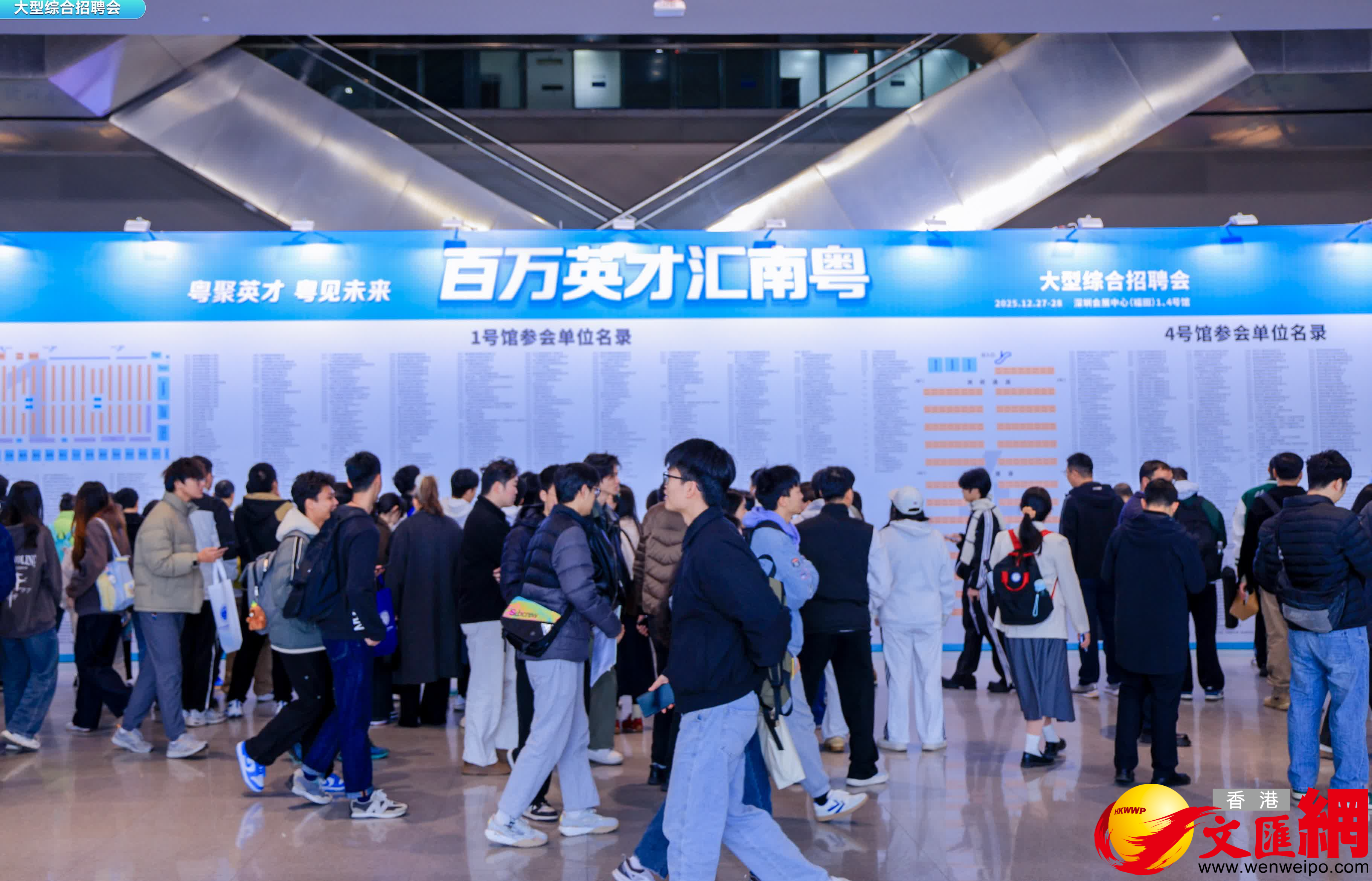 (香港文匯網記者 郭若溪 實習生崔銘洋 深圳報道)12月27日,「百萬英才匯南粵」大型綜合招聘會在深圳會展中心(福田)1、4號館盛大啟幕,記者在現場看到,自早上8點起,會場外便已排起長隊,展館內人流如織、人氣爆棚。作為廣東省年末規模最大、規格最高的招才盛宴,本次招聘會集結粵港澳三地超1600家重點用人單位,釋放6.5萬個優質崗位,以全學歷覆蓋、多領域聯動、沉浸式體驗的特色,吸引萬千求職者。