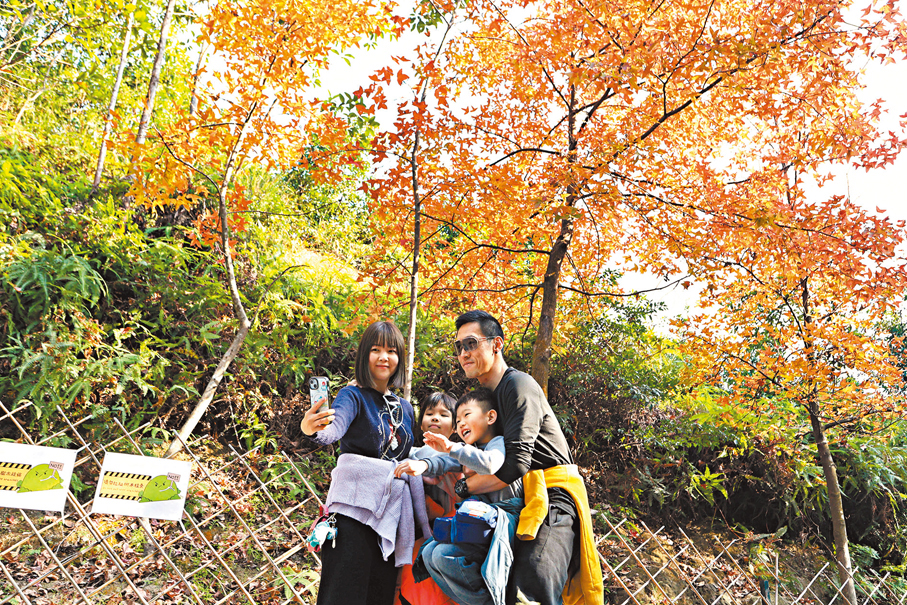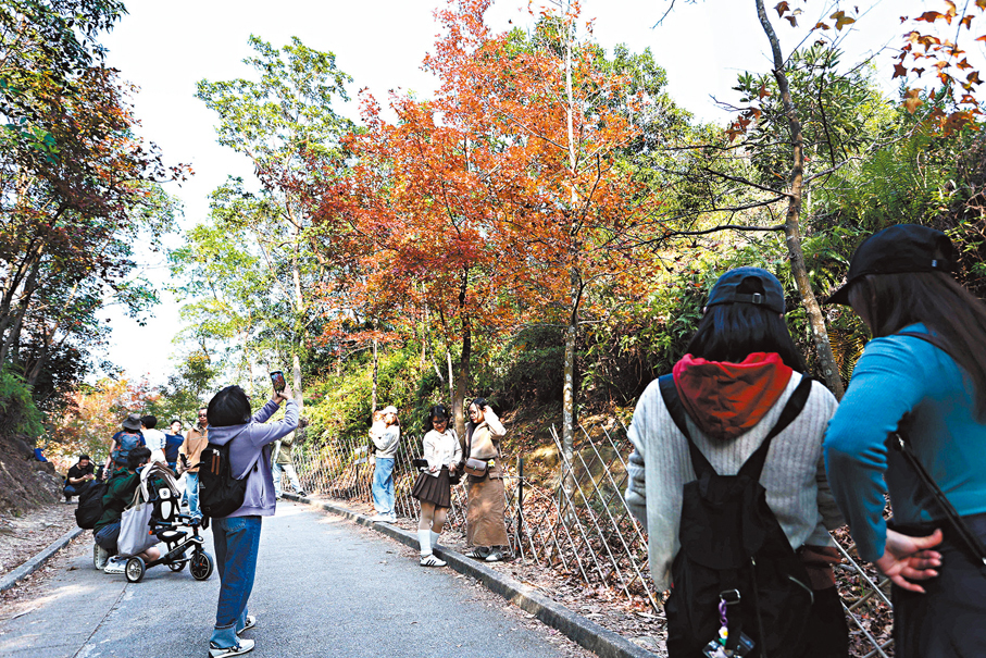 聖誕節小長假今日結束,不少留港市民趁昨日假期郊遊,欣賞香港的自然風光。大熱郊遊地點之一的元朗大棠楓香林近日迎來賞楓旺季,吸引大批市民及內地旅客專程到訪,現場人流絡繹不絕,更有市民沿途拍攝紅葉美景。當中除本地市民外,有深圳旅客透過社交平台慕名而來,感受香港郊野的紅葉景致,亦有市民幾乎每年到訪,見證楓樹漸成規模,持續支持本地自然景點,又認為香港尚有不少未曾探訪之地,值得一探。另外,為疏導乘客,港鐵公司昨日開設期間限定的賞楓專車。不過,有市民決定展開近3個小時行山之旅,到大棠觀賞紅葉,欣賞香港大自然的風光。