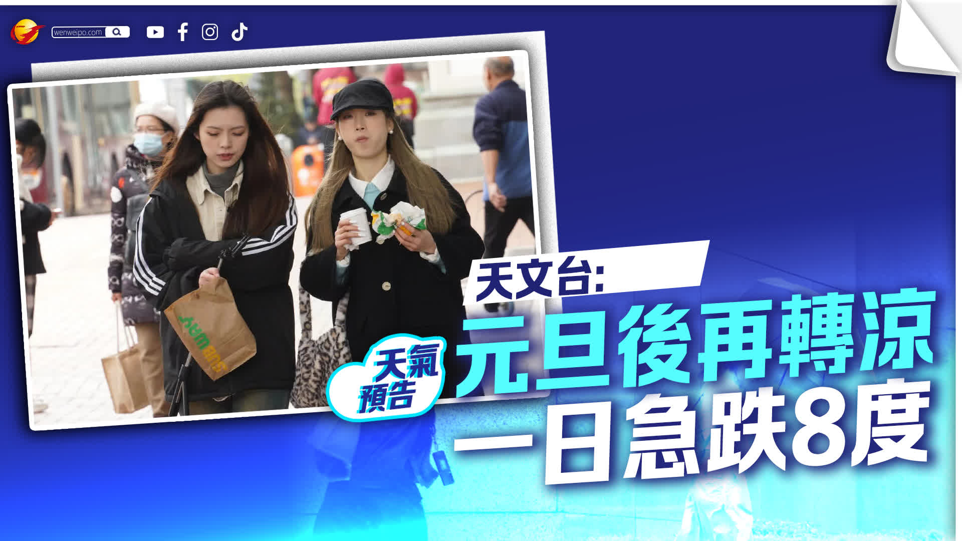 根據天文台今日九天天氣預報,周二最高氣溫可回升至24度,周三除夕氣溫約18至21度。元旦日過後,天氣會顯著轉涼,周五(1月2日)早晚相當清涼,大致多雲,氣溫會跌至最低13度,比元旦日最高氣溫急跌8度,周六同樣最低氣溫只有13度。