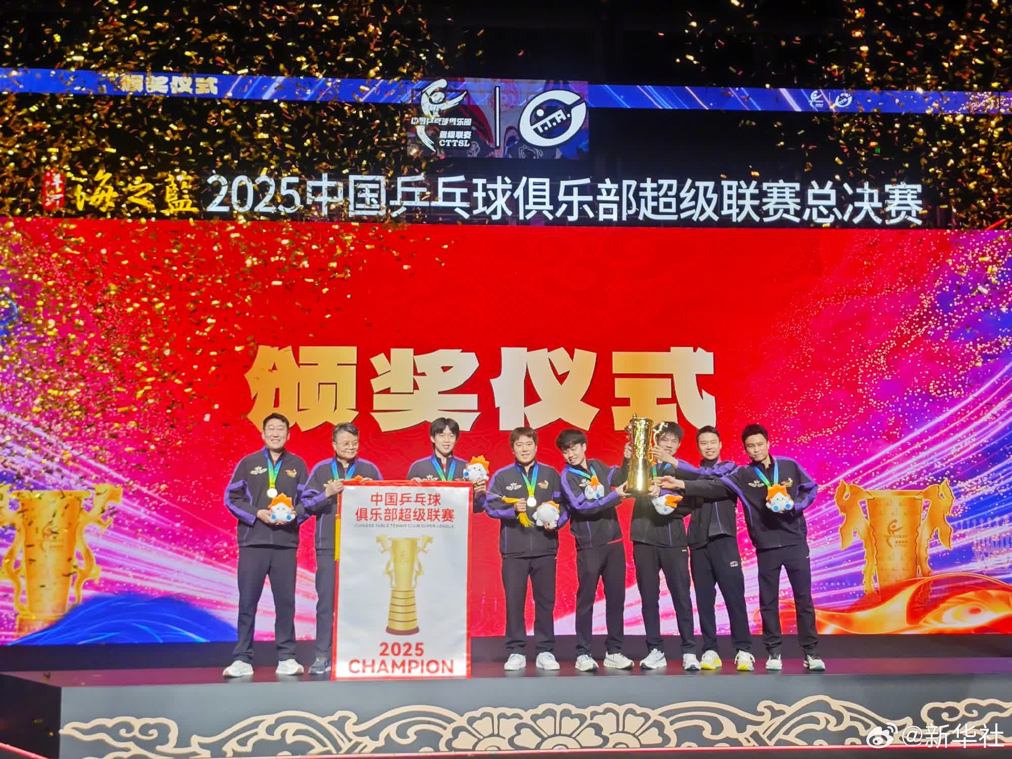12月28日晚, 2025賽季中國乒乓球俱樂部超級聯賽在南京落幕。在男、女團決賽中,山東魏橋·向尚運動和深圳大學分別擊敗各自對手,獲得本賽季乒超冠軍。