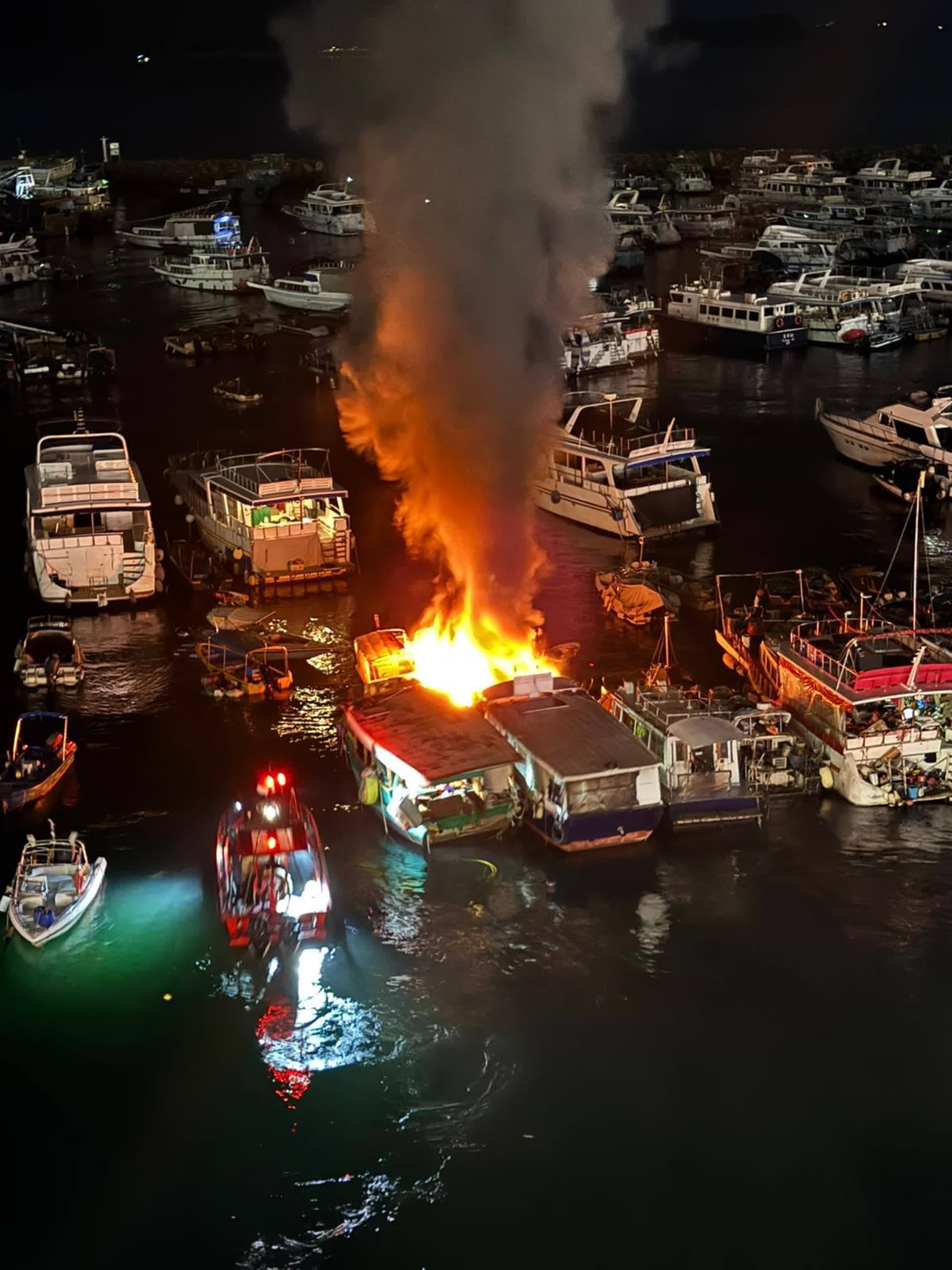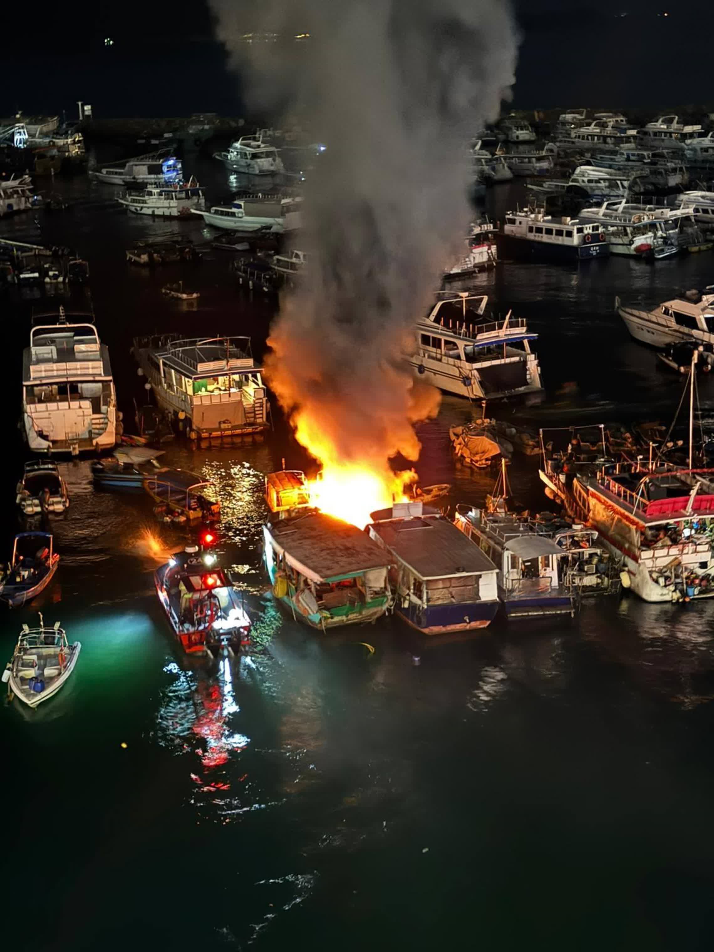 香港文匯報訊(記者 蕭景源)今日(28日)晚上約8時許,西貢萬年街對開避風塘停泊的一艘遊艇突然冒煙起火,火乘風勢迅速蔓延,一度火光熊熊捲起濃煙。消防員奉召到場立即開喉灌救,期間除有海上消防船駛近射水外,岸邊亦有消防員攀欄開喉嘗試灌救,所幸火警很快被撲熄,消防正調查起火原因。